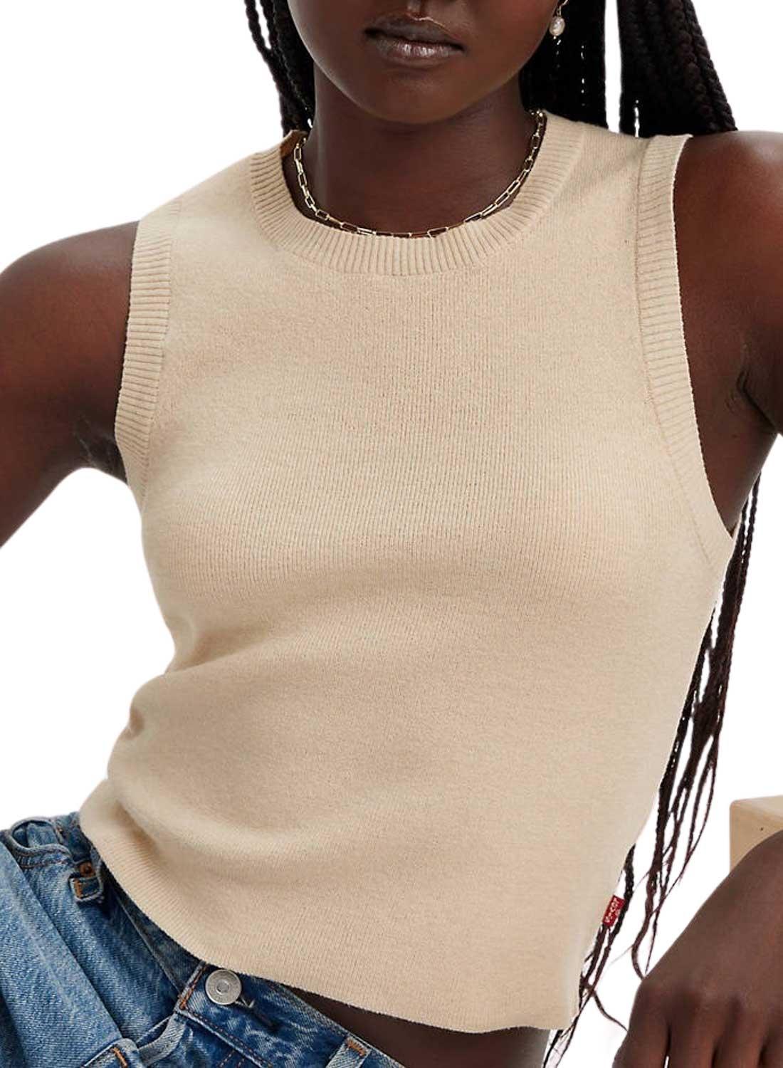 Top Levis. Modelo Ocean. Cor bege. Sem mangas. Gola redonda. Ajuste slim.