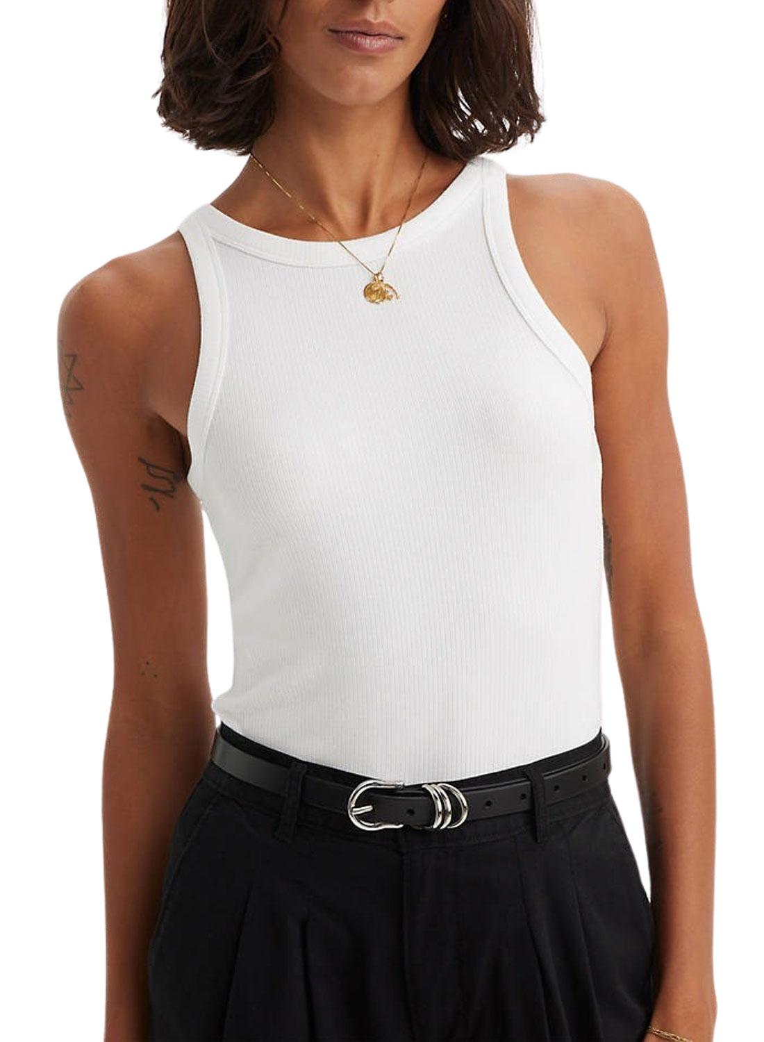 Top Levis. Modelo Dreamy. Cor branca. Gola redonda. Ajuste slim. Sem mangas.