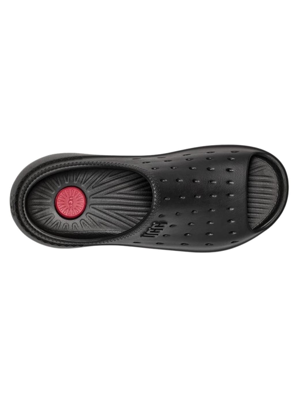 Chinelos UGG. Modelo Slide It. Cor preto. Detalhes perfurados. Sola de Eva. Logotipo na palmilha. Palmilha de espuma de dupla densidade. Sola de espuma.