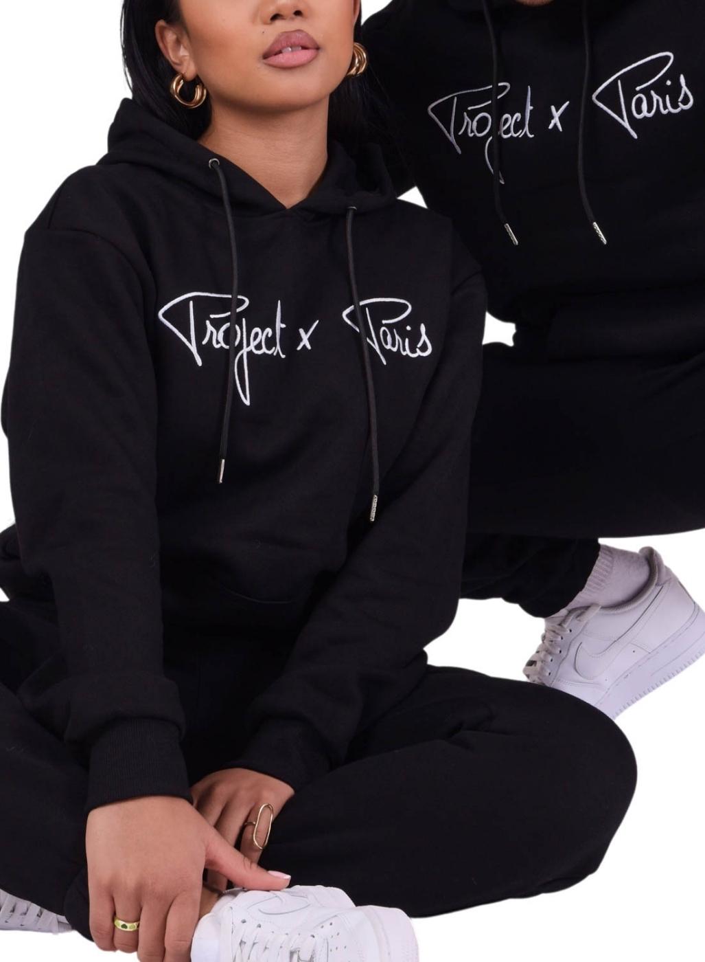 Moletom Proyect x Paris. Cor preta. Capuz com cordões. Extremidades caneladas. Ajuste regular. Bolso canguru. Logotipo bordado em branco no peito.