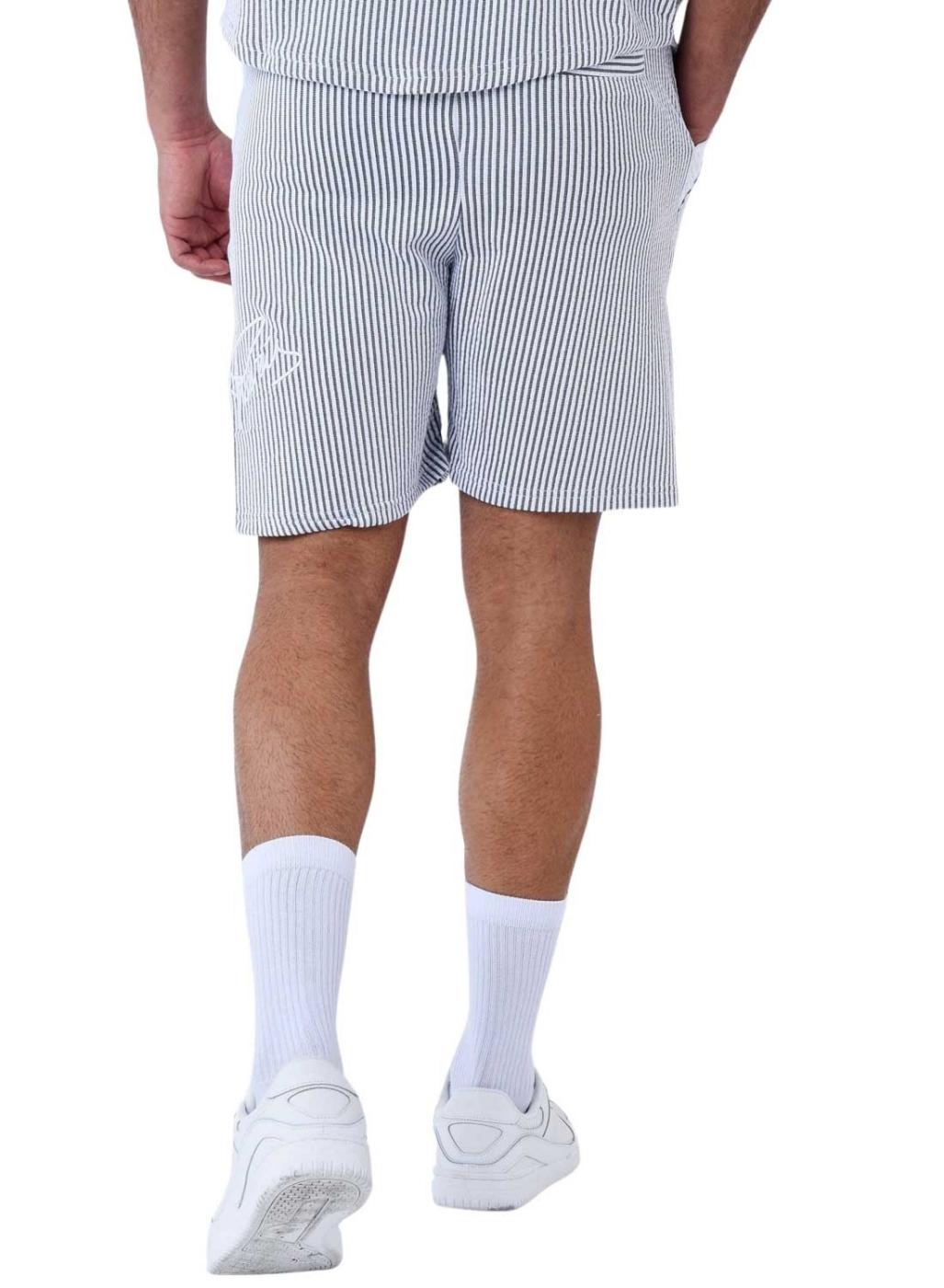 Bermudas Project x Paris. Estilo Jogger. Estampado com listras verticais. Cinza e branco. Cintura elástica. Logotipo bordado. Bolsos laterais.
