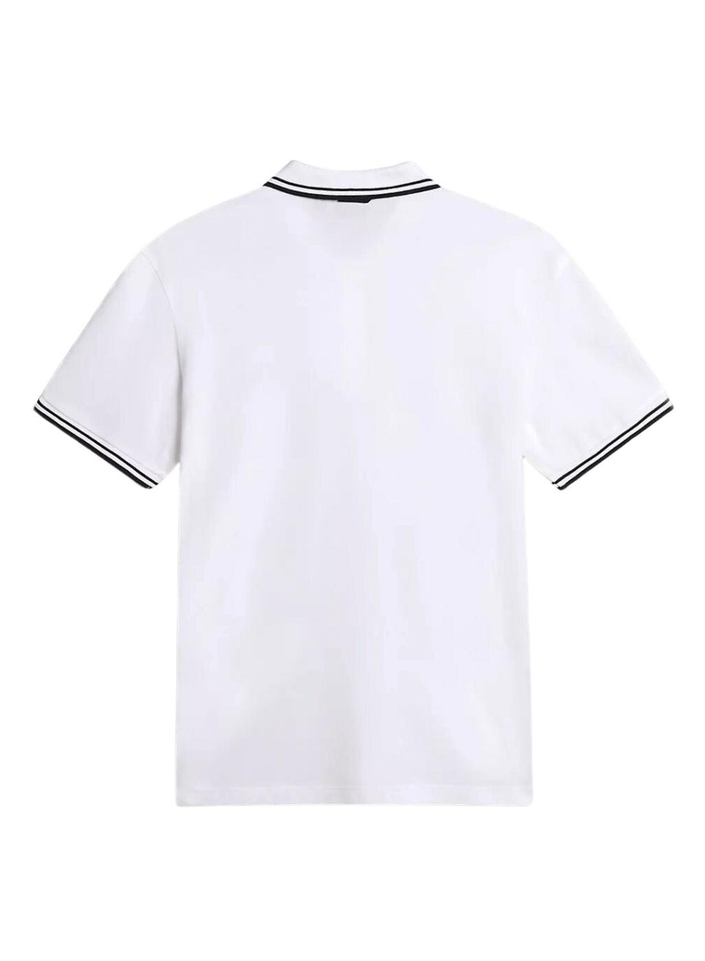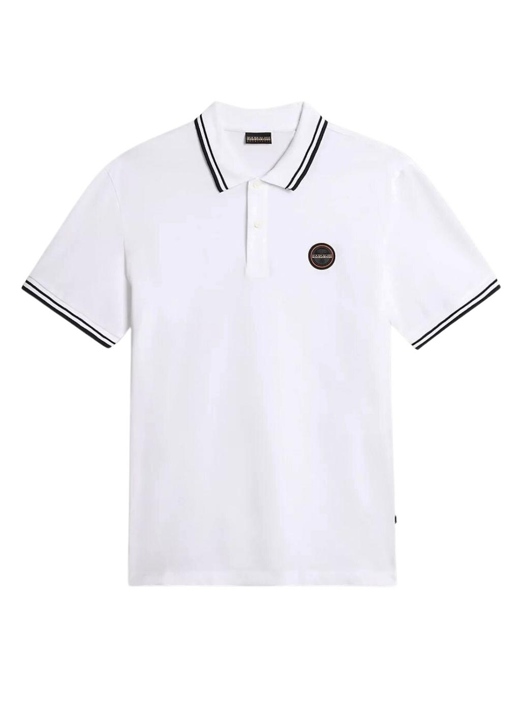 Polo de manga curta Napapijri. Cor branca. Detalhes em contraste. Modelo E-Macas. Fecho com botões. Remendo no peito. Corte regular. O modelo veste o tamanho L. Feito de algodão. Acabamentos em malha.