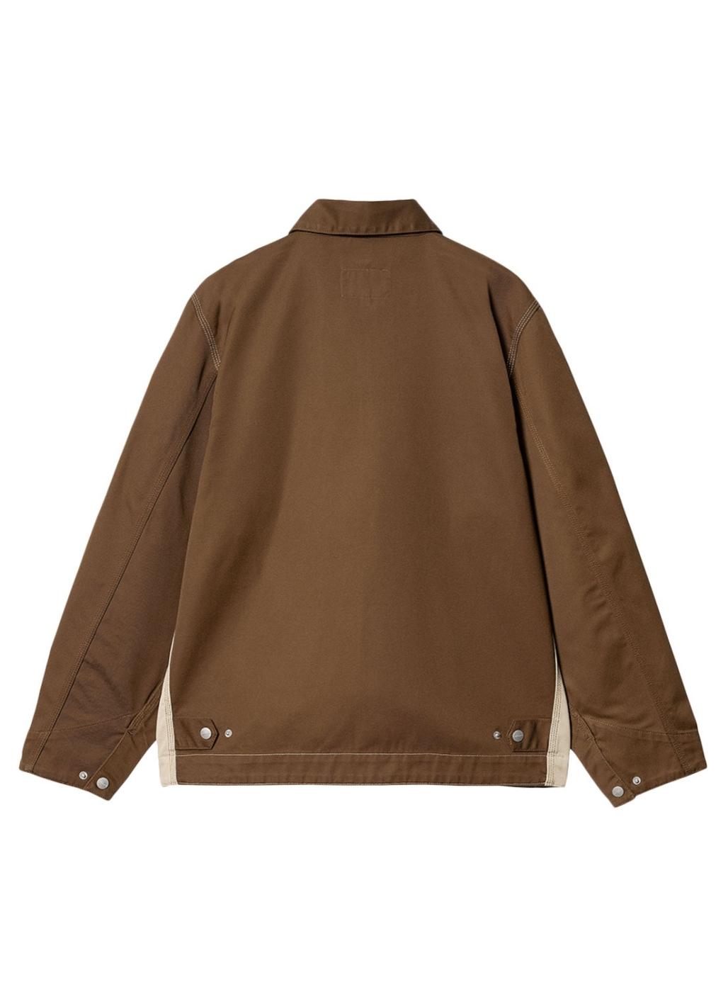 Jaqueta Carhartt. Modelo Module Script. Cor marrom e bege. Bloco de cores. Mangas largas. Fecho de correr. Estilo bomber. Punhos e bainha ajustáveis. Bolsos laterais. Logotipo bordado. O modelo veste o tamanho S.