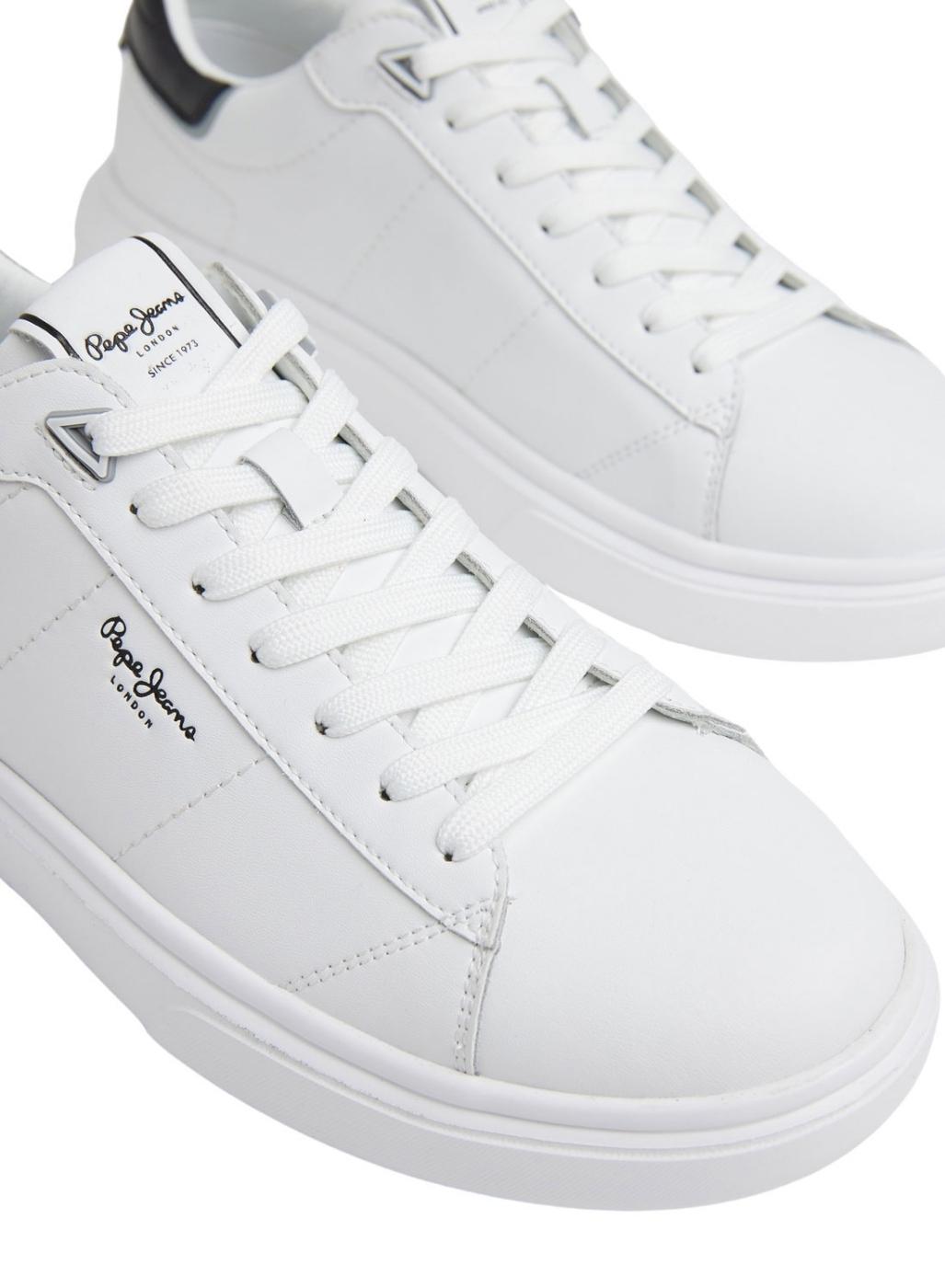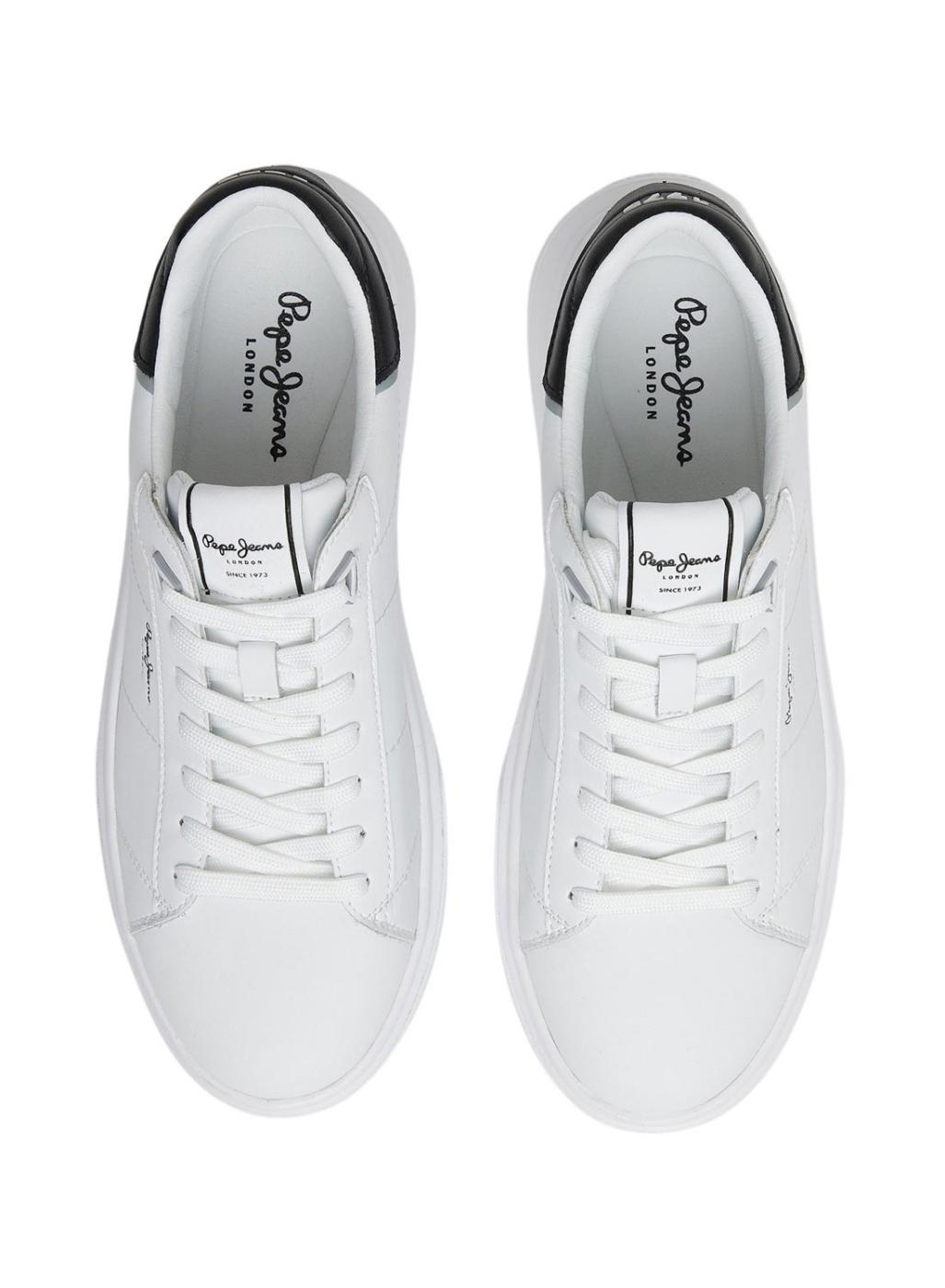 Sapatilhas Pepe Jeans. Modelo Eaton Basic. Cor branca. Fecho com cordões. Parte superior em couro. Logo lateral. Detalhes em preto. Sola cupsole extraleve de grande volume. Altura da sola: 5cm.