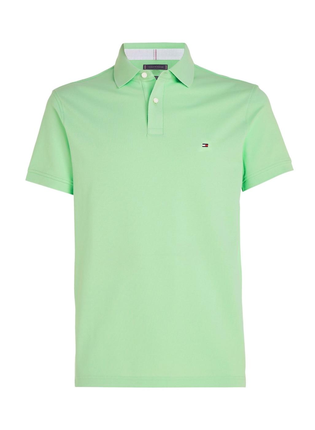 Camisa polo Tommy Hilfiger. Cor verde menta. Modelo básico 1985. Gola com dois botões. Logotipo bordado no peito. Manga curta. Ajuste regular.