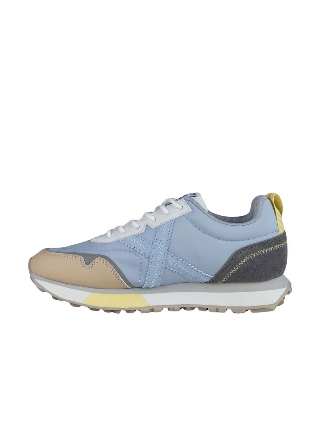 Sapatos Munich. Modelo Next 05. Cor azul. Painéis em contraste. Sola de borracha. Logotipo lateral. Entressola de EVA. Fecho com cordões.