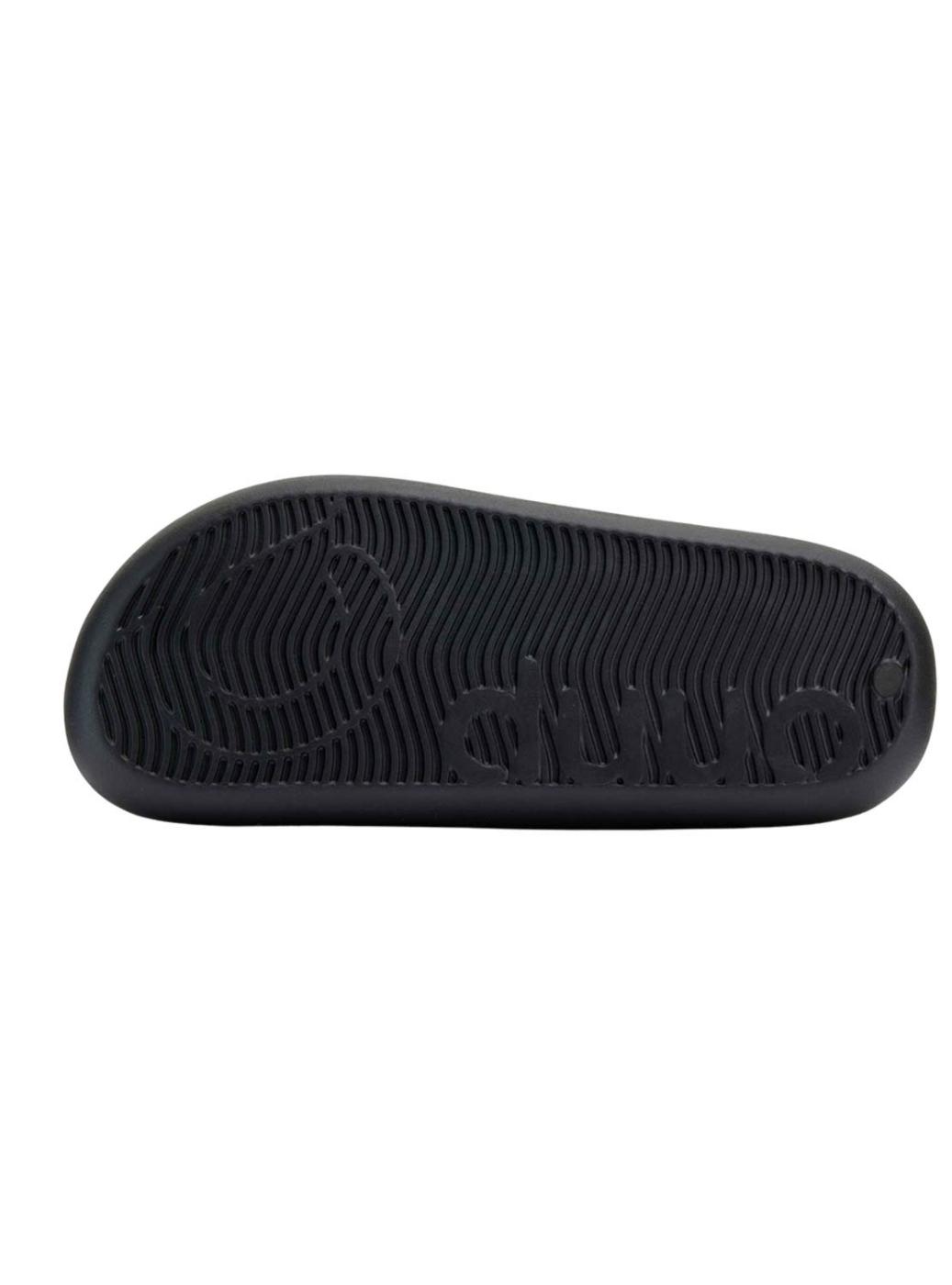 Sandálias Duuo. Modelo EVA. Material de borracha resistente à água. Cor preta. Sola com volume. Tiras superiores com fivelas ajustáveis.
