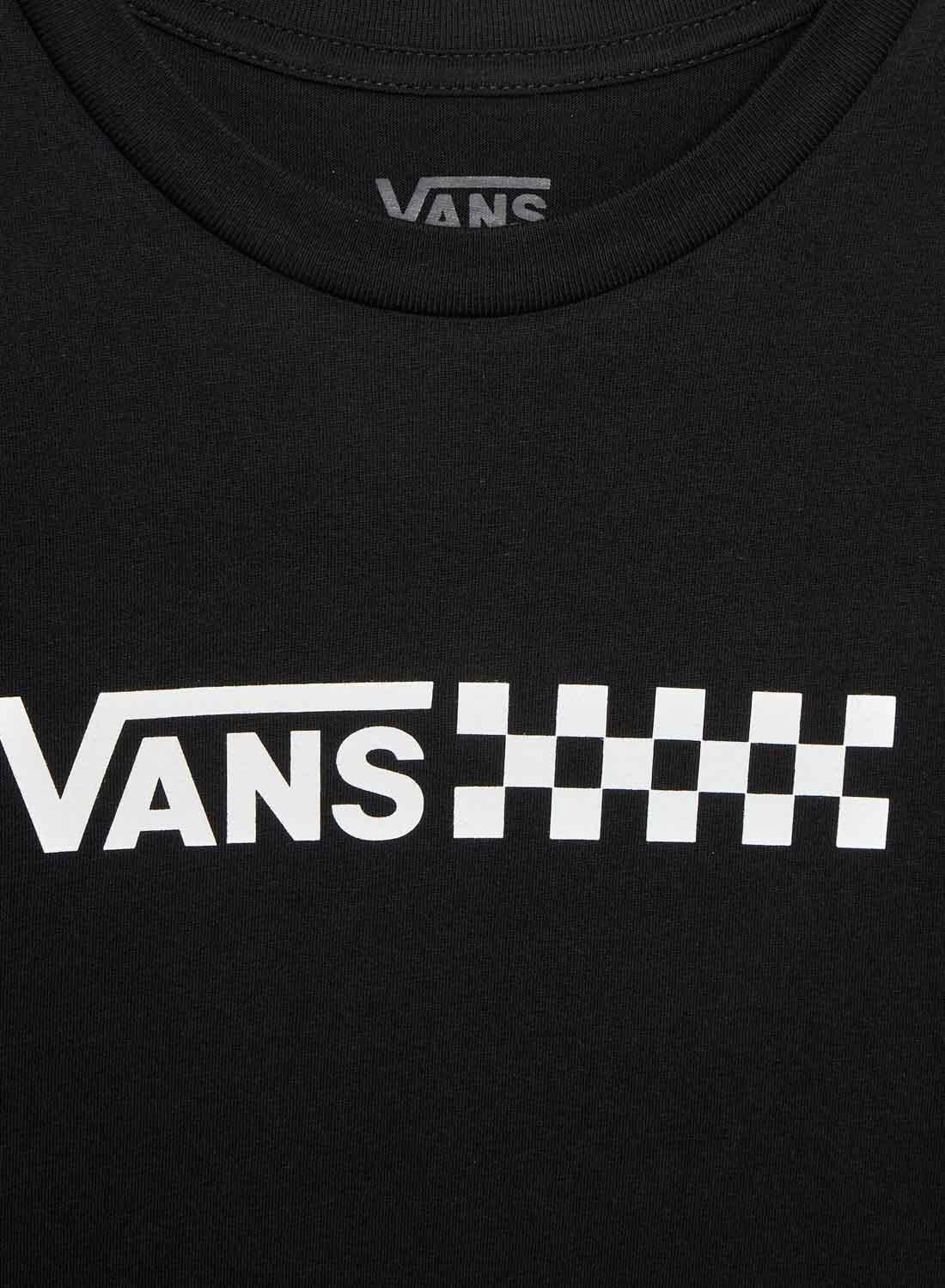 Vestido Vans. Cor preta. Gola redonda. Manga curta. Corte largo. Logotipo da Vans com xadrez no peito.