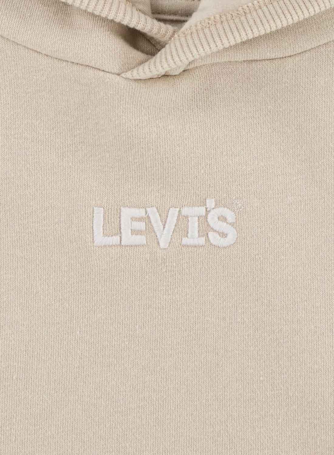 Moletom Levis. Modelo Lived In Hoodie. Cor bege. Logotipo bordado. Bolso estilo canguru. Punhos e barra elásticos.