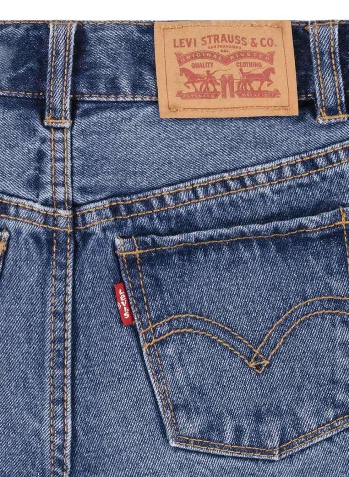 Shorts Levis. Modelo Mom. Cor marinho. 5 bolsos. Parche da marca na parte de trás. Fecho de botão e zíper.