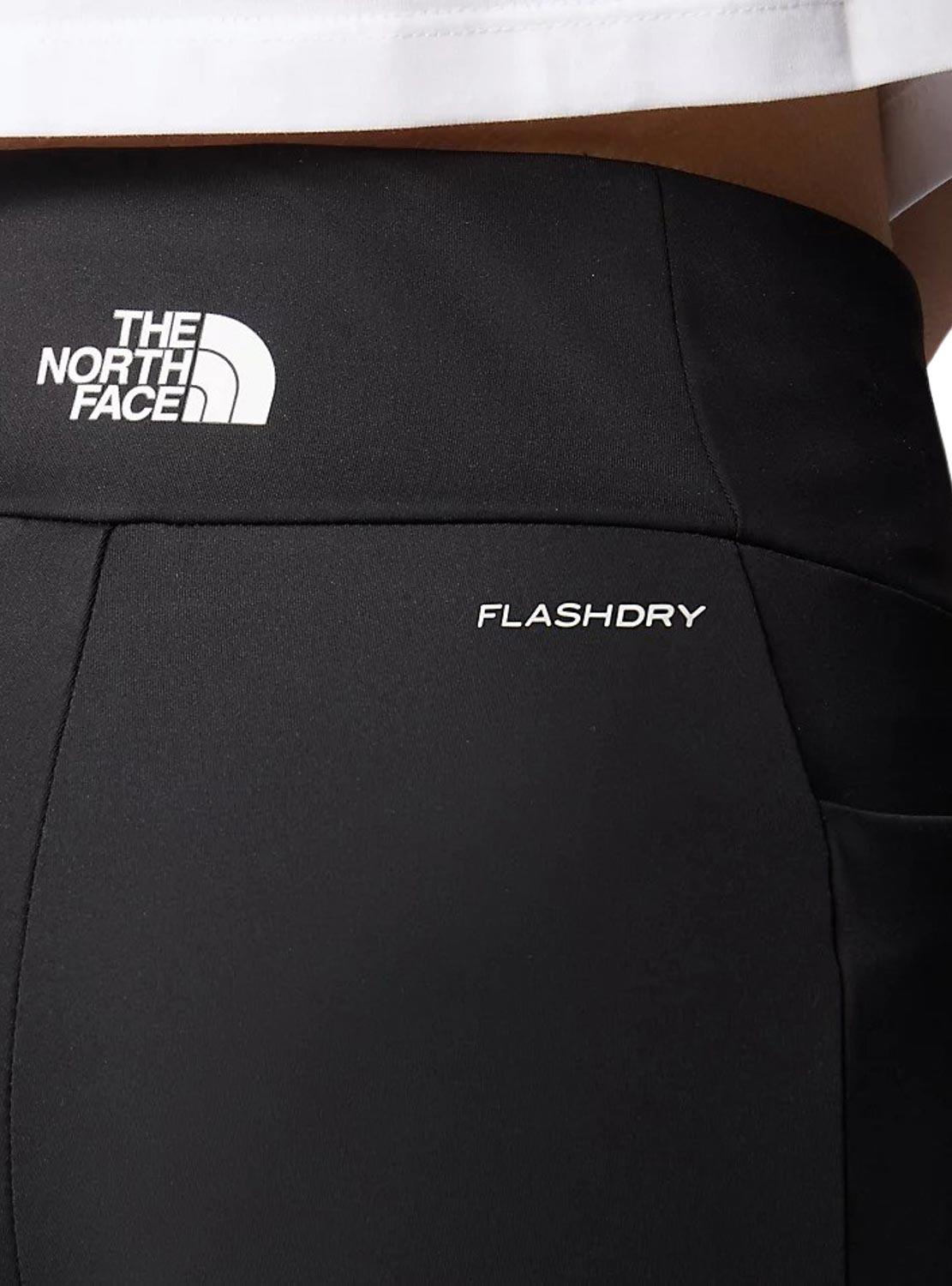 Short The North Face. Cor preta. Tecido de secagem rápida com tecnologia FlashDry. Cintura larga. Bolso para dispositivos multimídia no lado direito. Logotipo na cintura. Feito com tecidos reciclados. Tamanhos: XS 6, S 7/8, M 10, L 12