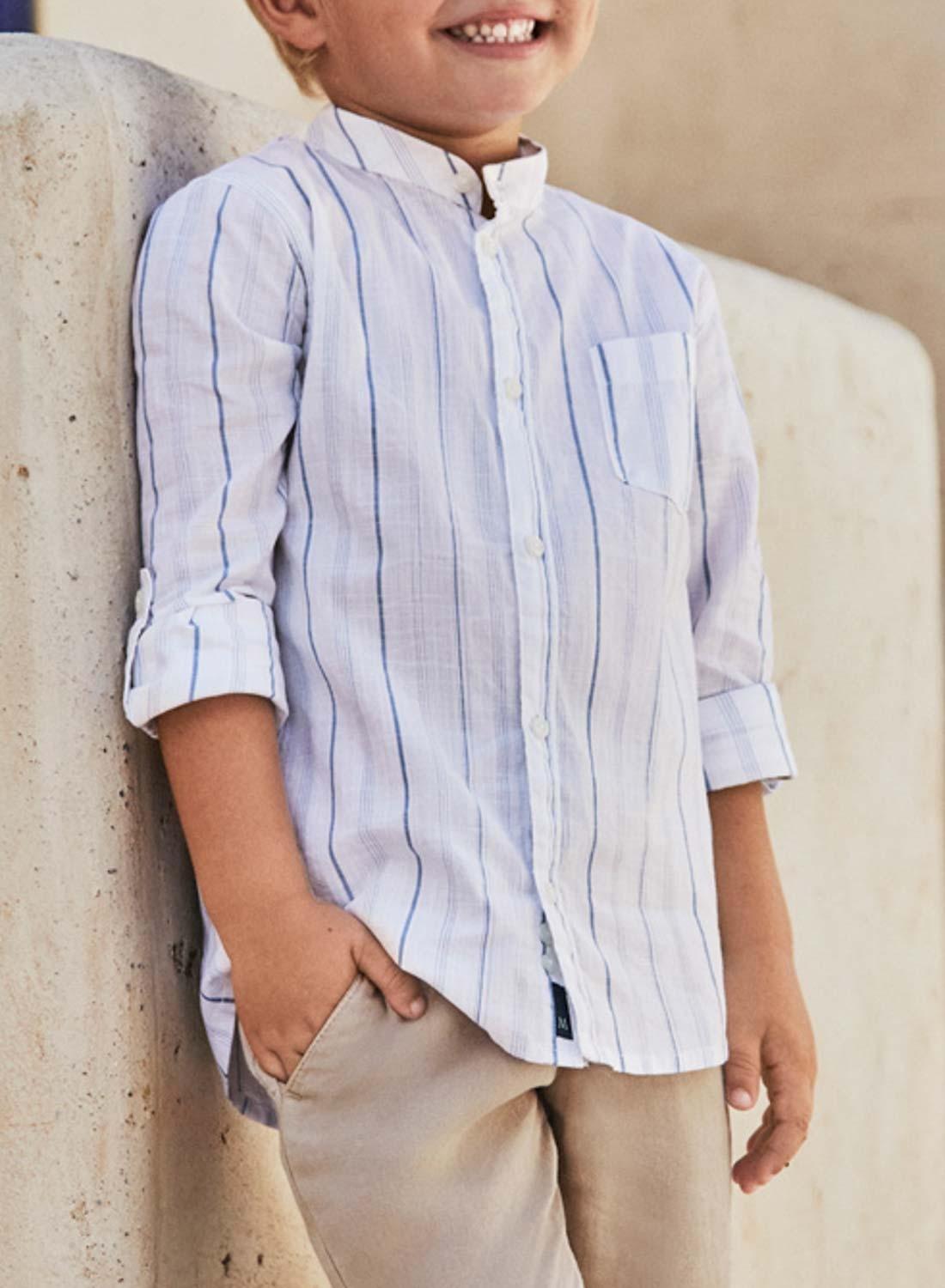 Camisa de manga larga Mayoral com gola mandarim em azul marinho para menino