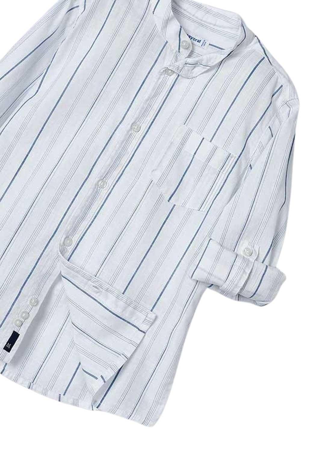 Camisa Mayoral Gola Mao Listrada Branca para Menino