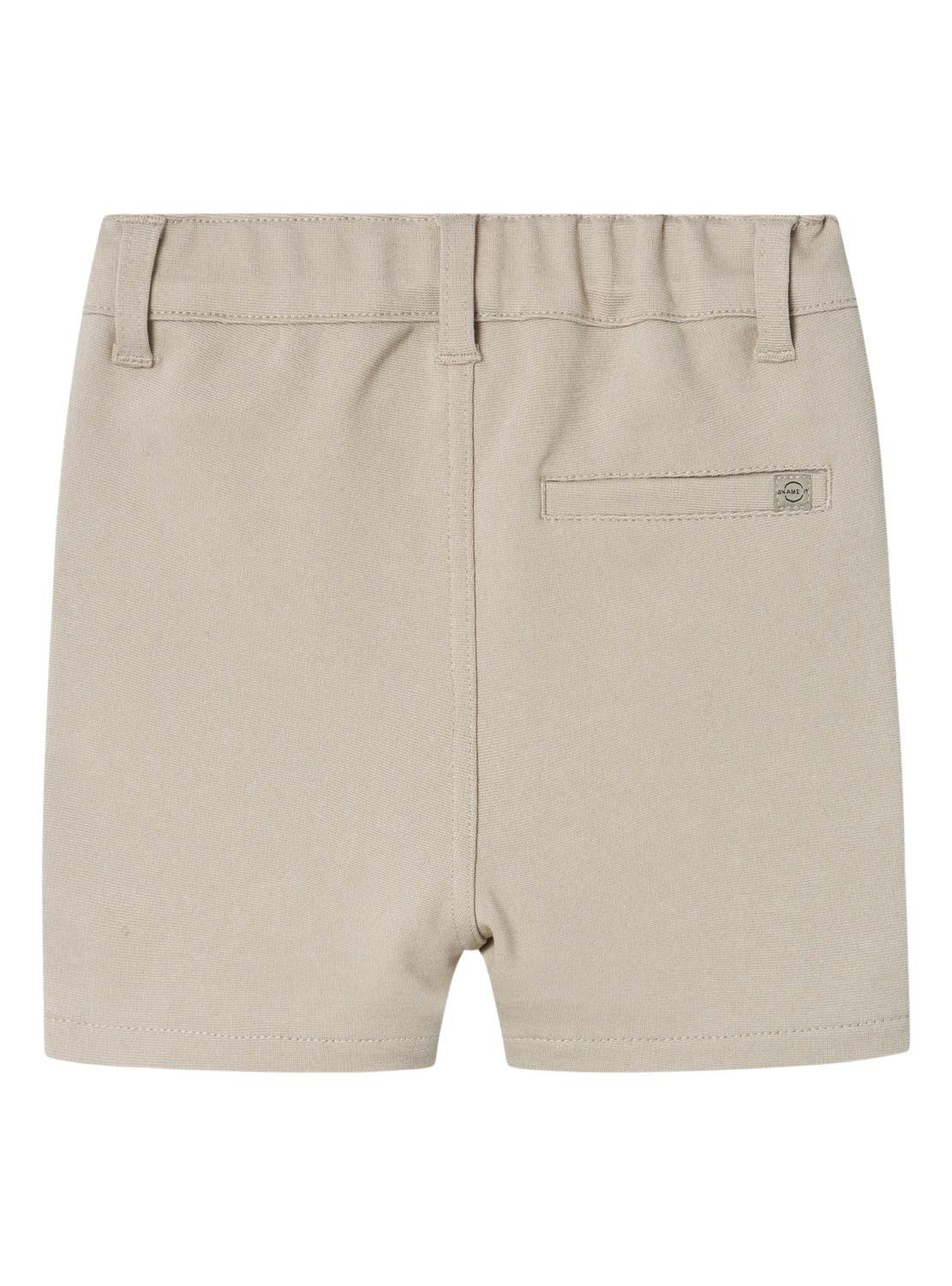 Bermuda Name It. Modelo Silas. Cor bege. 3 bolsos. Encerramento com botão. Cintura ajustável. Slim fit.