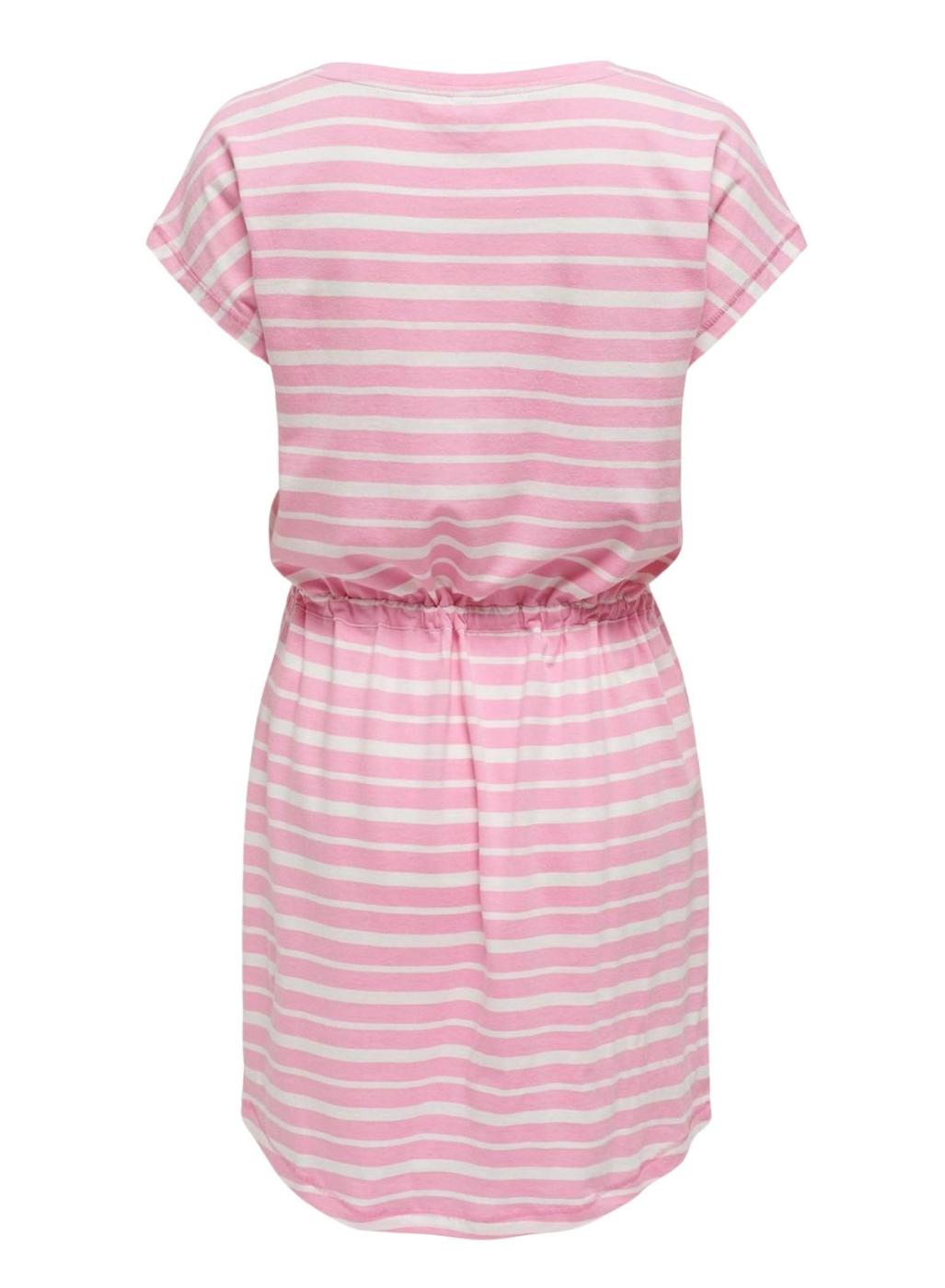 Vestido Only. Modelo May. Cor-de-rosa. Manga curta. Estampado de riscas. Cintura com cordão. Corte regular.