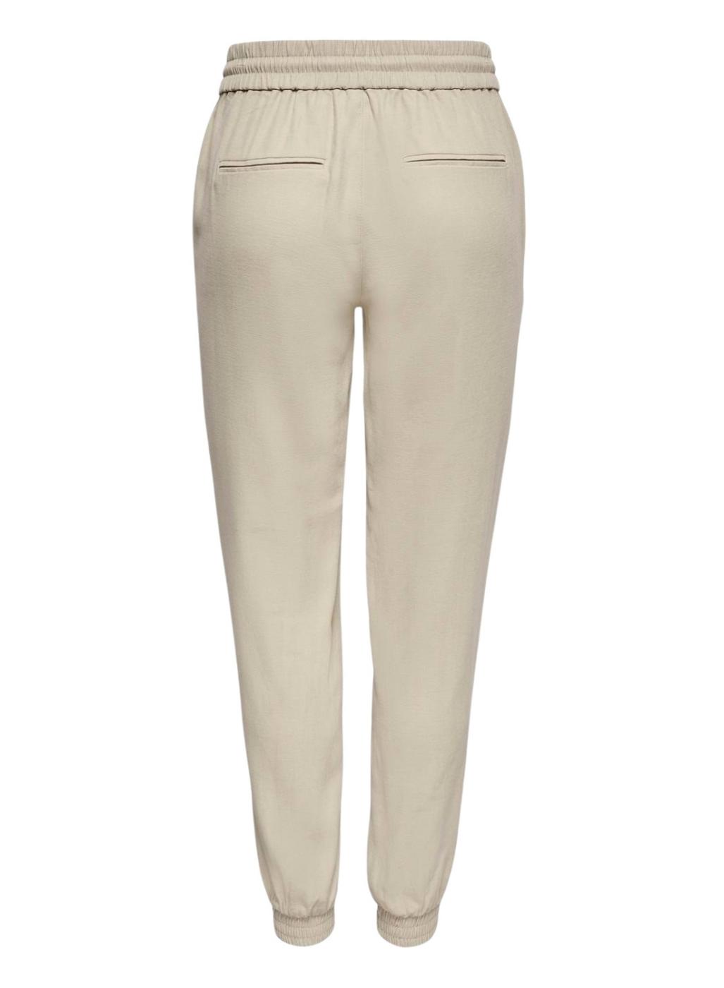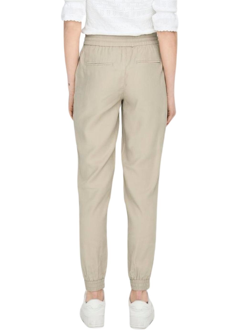 Calças Only. Modelo Kelda. Cor bege. 4 bolsos. Cintura elástica ajustável com cordão. Corte regular.