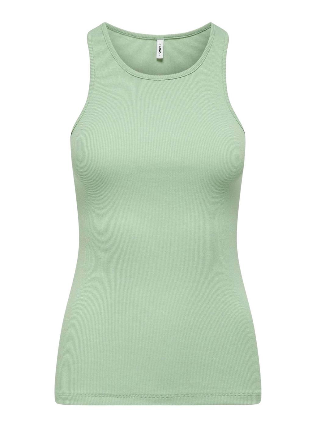 Top Only. Modelo Kenya. Cor verde. Gola redonda. Sem mangas. Corte justo. Tecido elástico.