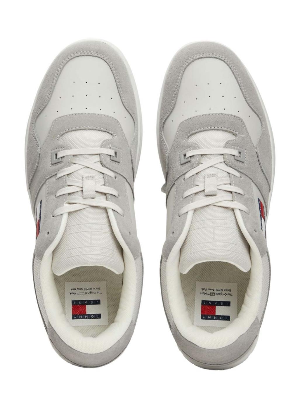 Sapatilhas Tommy Jeans Basket cinza e branco para homem.