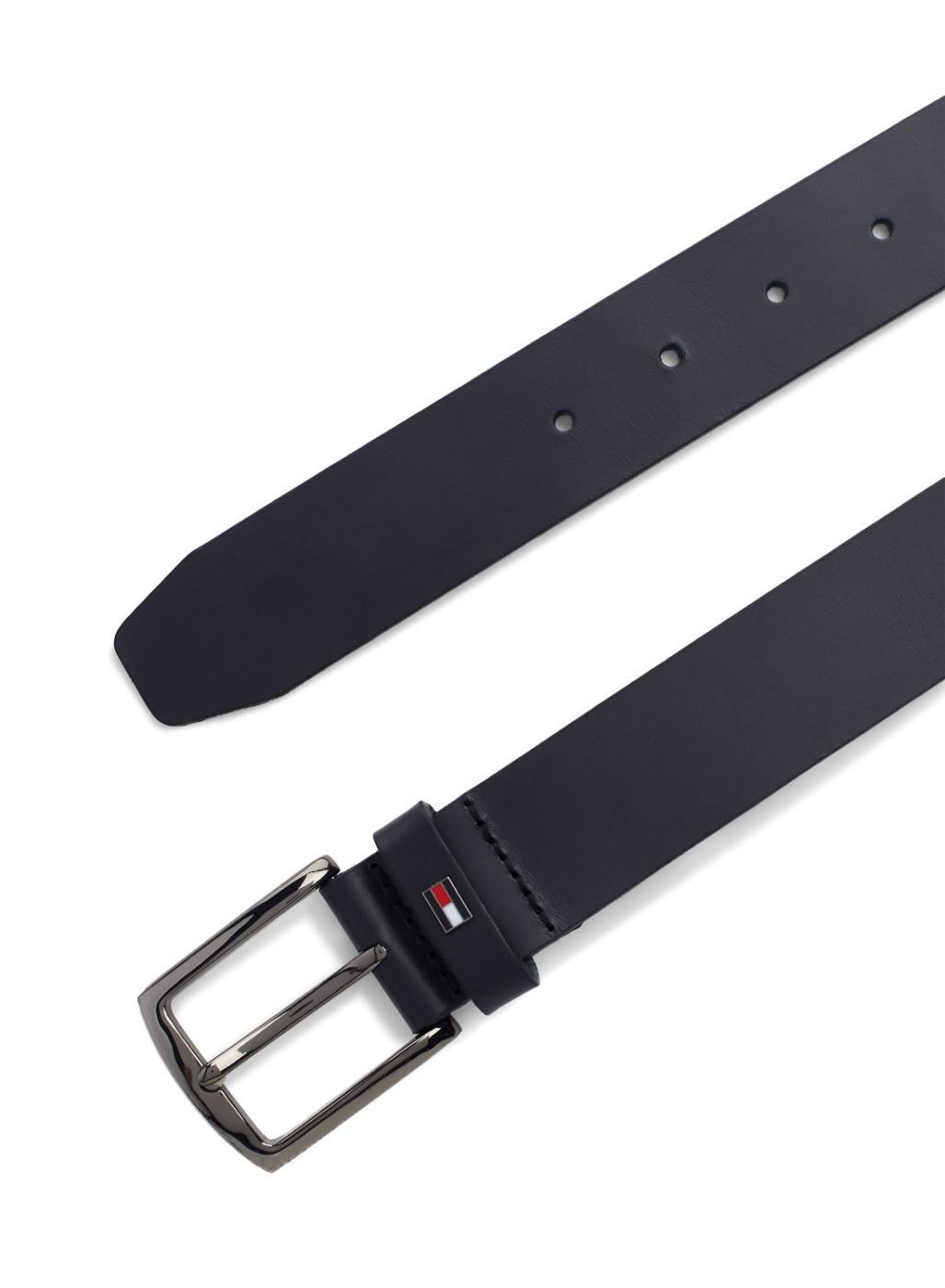 Cinto de couro da Tommy Hilfiger. Modelo Denton. Cor marinho. Acabamento liso. Fivela metálica com forma quadrada. Detalhe distintivo na correia. Logo esmaltado na presilha. Largura: 3,5 cm.
