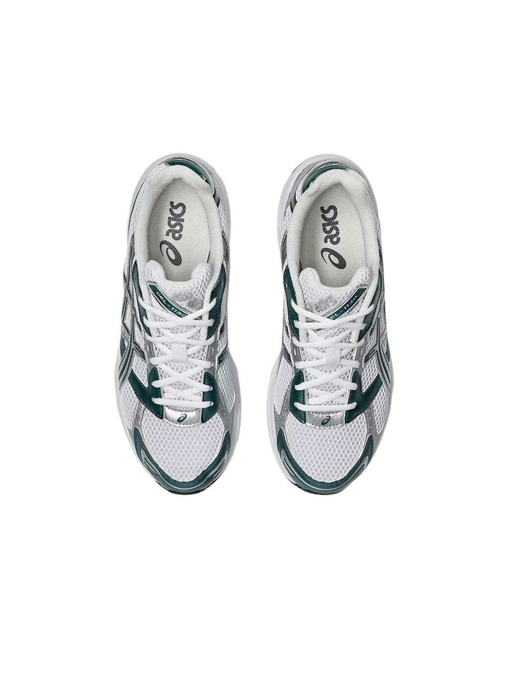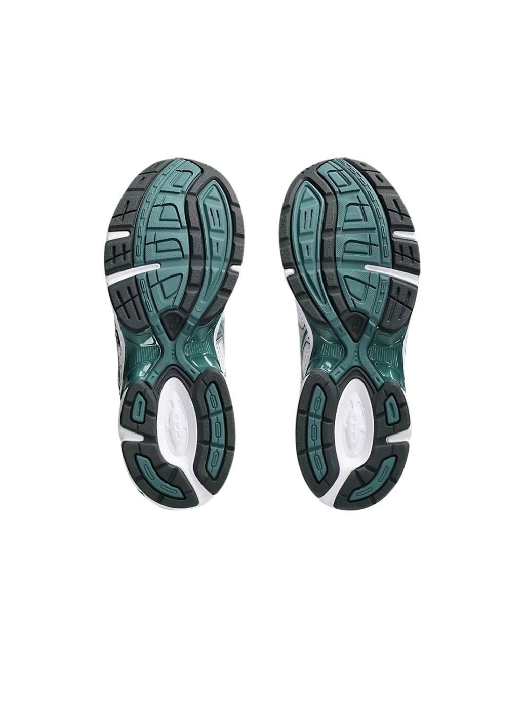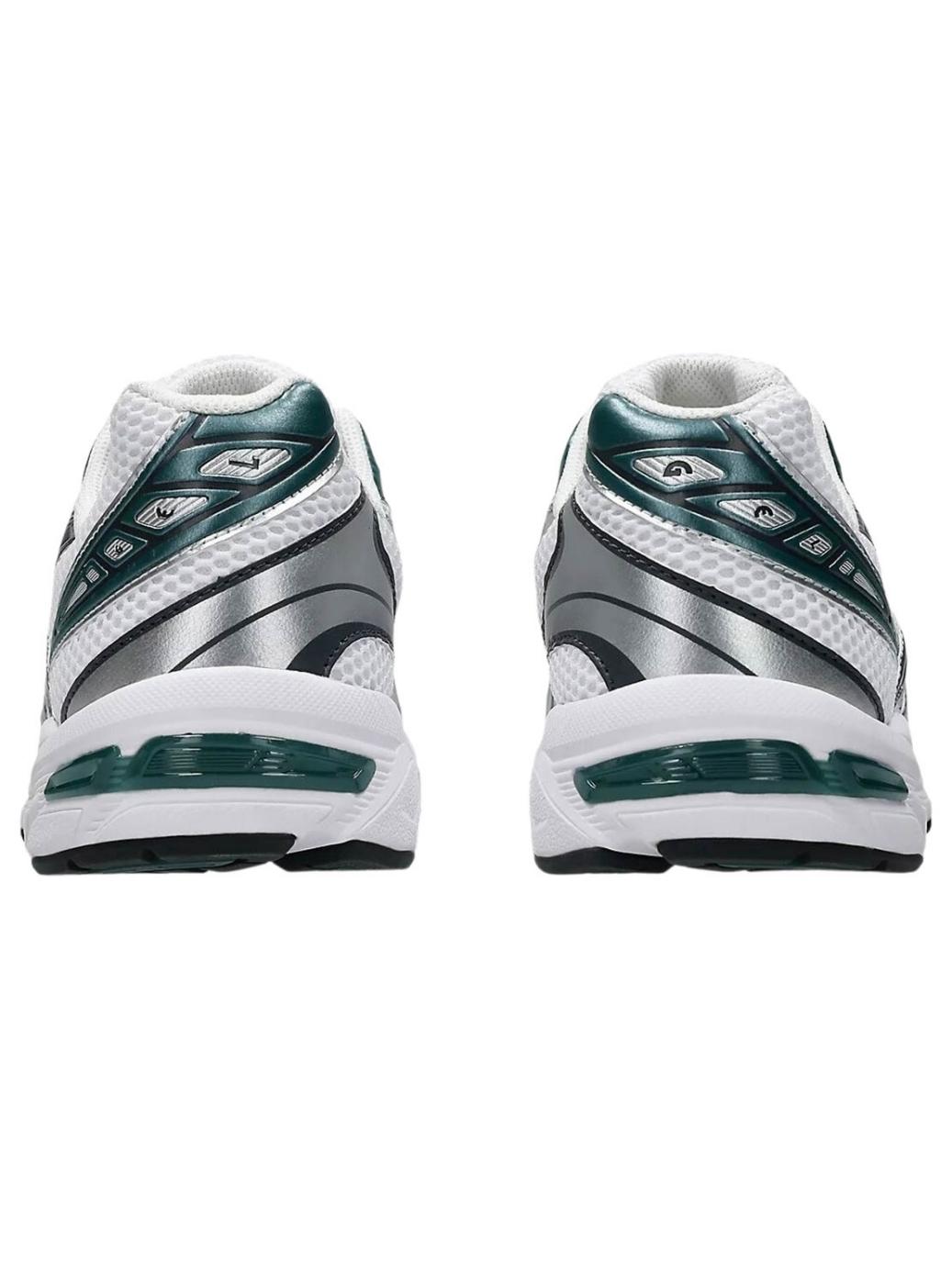 Tênis Asics. Modelo Gel 1130. Cor branca e turquesa. Painéis de malha. Fechamento com cadarço. Estilo chunky. Painéis em prata. Sola de borracha. Entressola de Gel. Biqueira reforçada.
