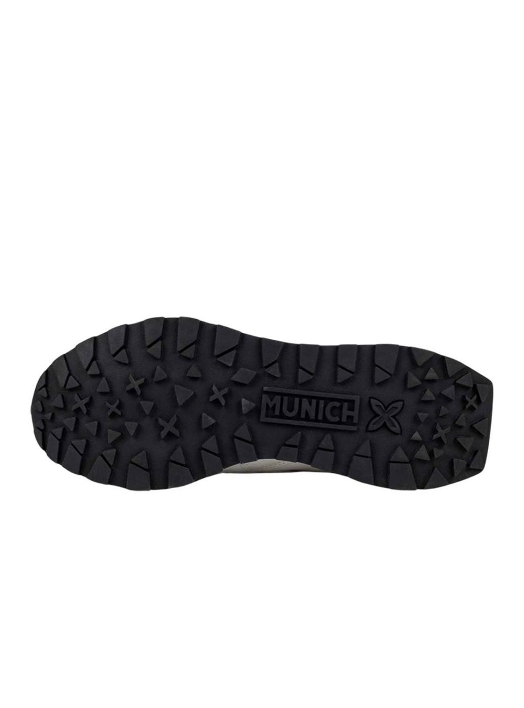 Sapatilhas Munich. Modelo Soku 16. Cor branca. Fecho com cordões. Logotipo lateral. Painéis em prata. Sola de borracha. Entressola de EVA.