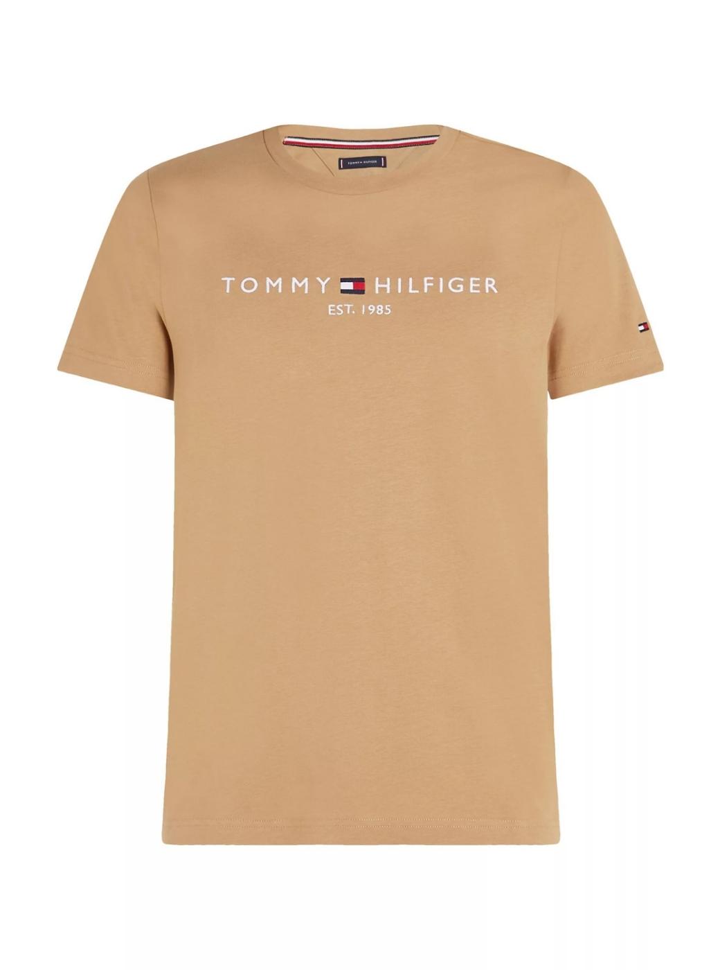 Camiseta Tommy Hilfiger. Modelo básico. Logotipo estampado no peito. Cor tostado. Gola redonda. Manga curta. Ajuste slim.