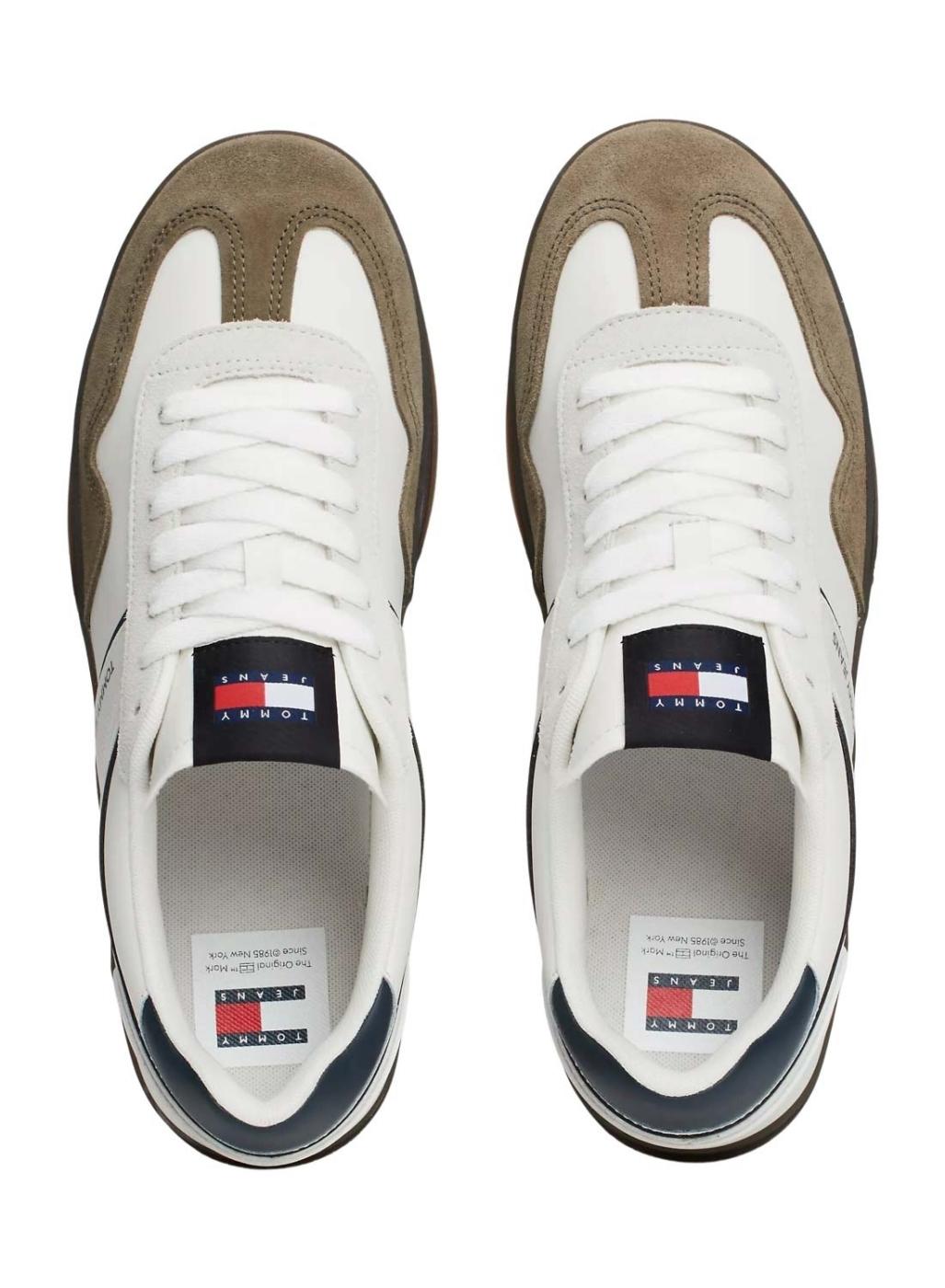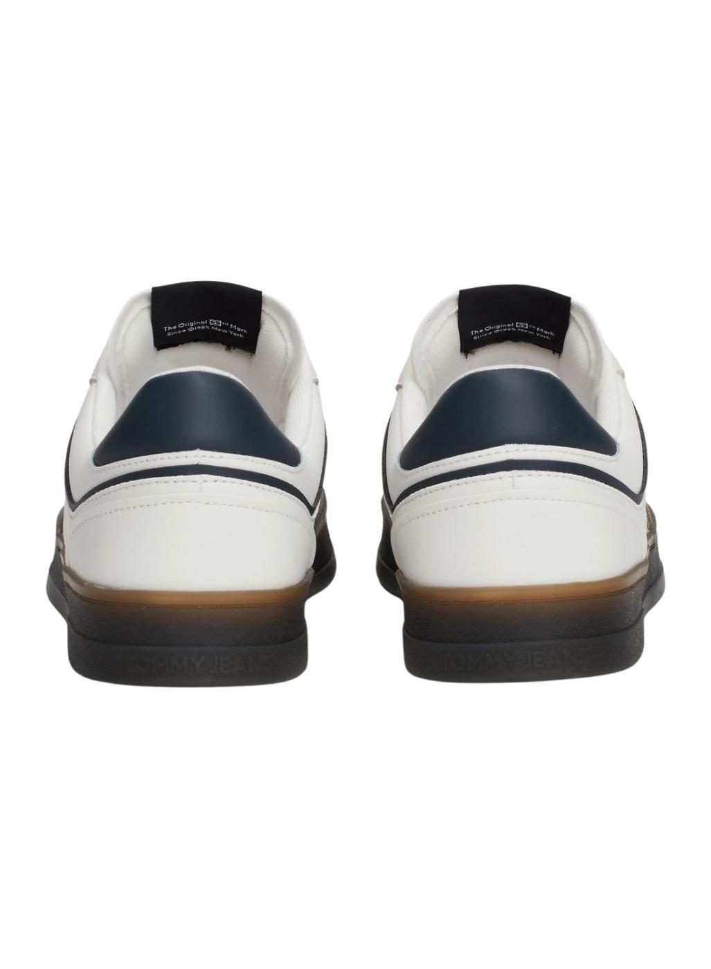 Sapatilhas Tommy Jeans. Modelo Greenwich. Exterior em mistura de couro. Interior de poliéster. Palmilha removível. Sola de borracha. Painéis com mistura de texturas. Sola cupsole de borracha cor natural. Logo da Tommy Jeans na lateral. Patch da Tommy na língua. Cor branca.