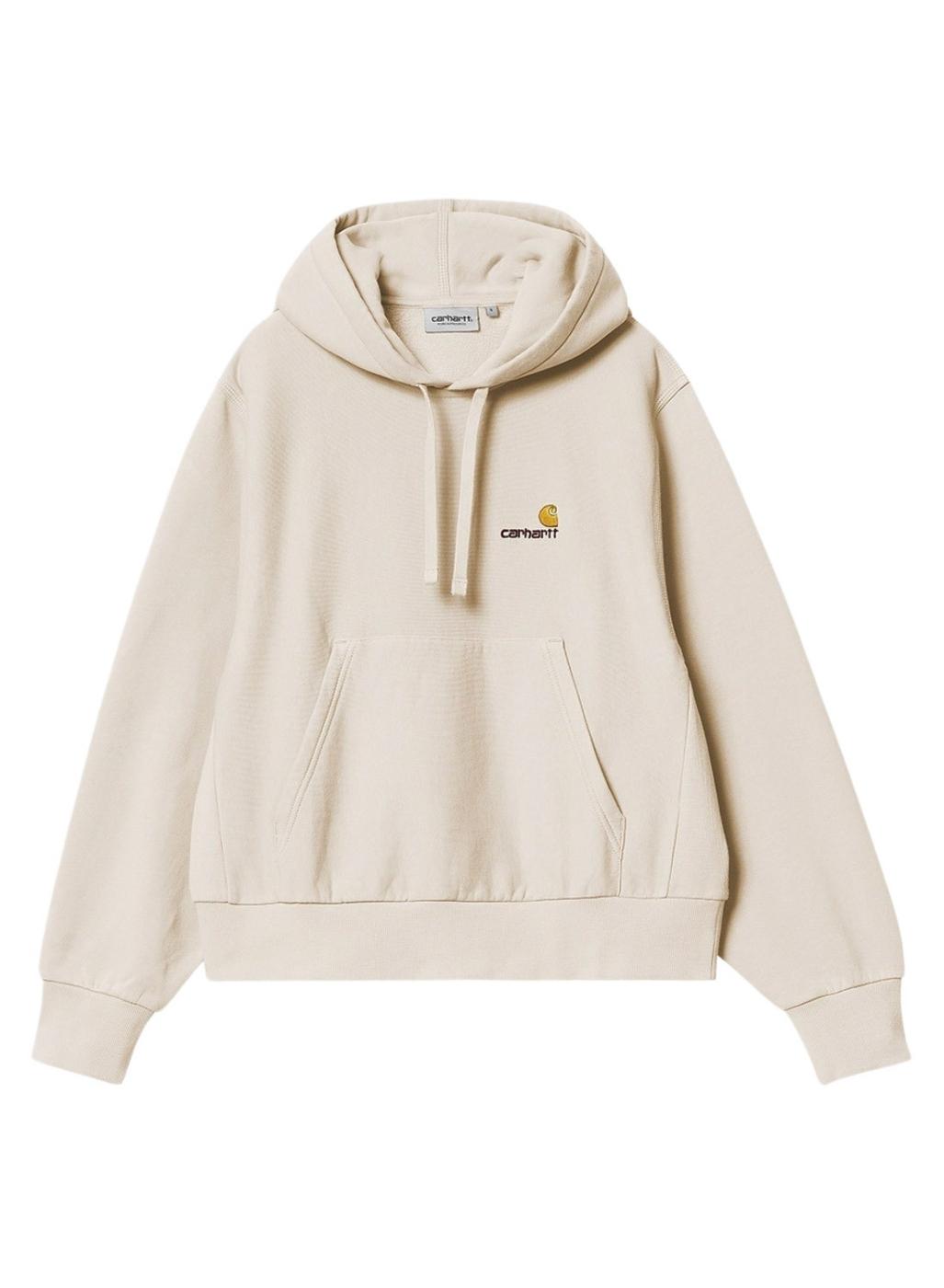 Moletom com capuz Carhartt WIP. Cor bege. Bolso canguru. Capuz ajustável com cordão. Acabamentos canelados. Logotipo bordado no peito. Tecido de poliéster e algodão escovado. Corte folgado. Toque suave.