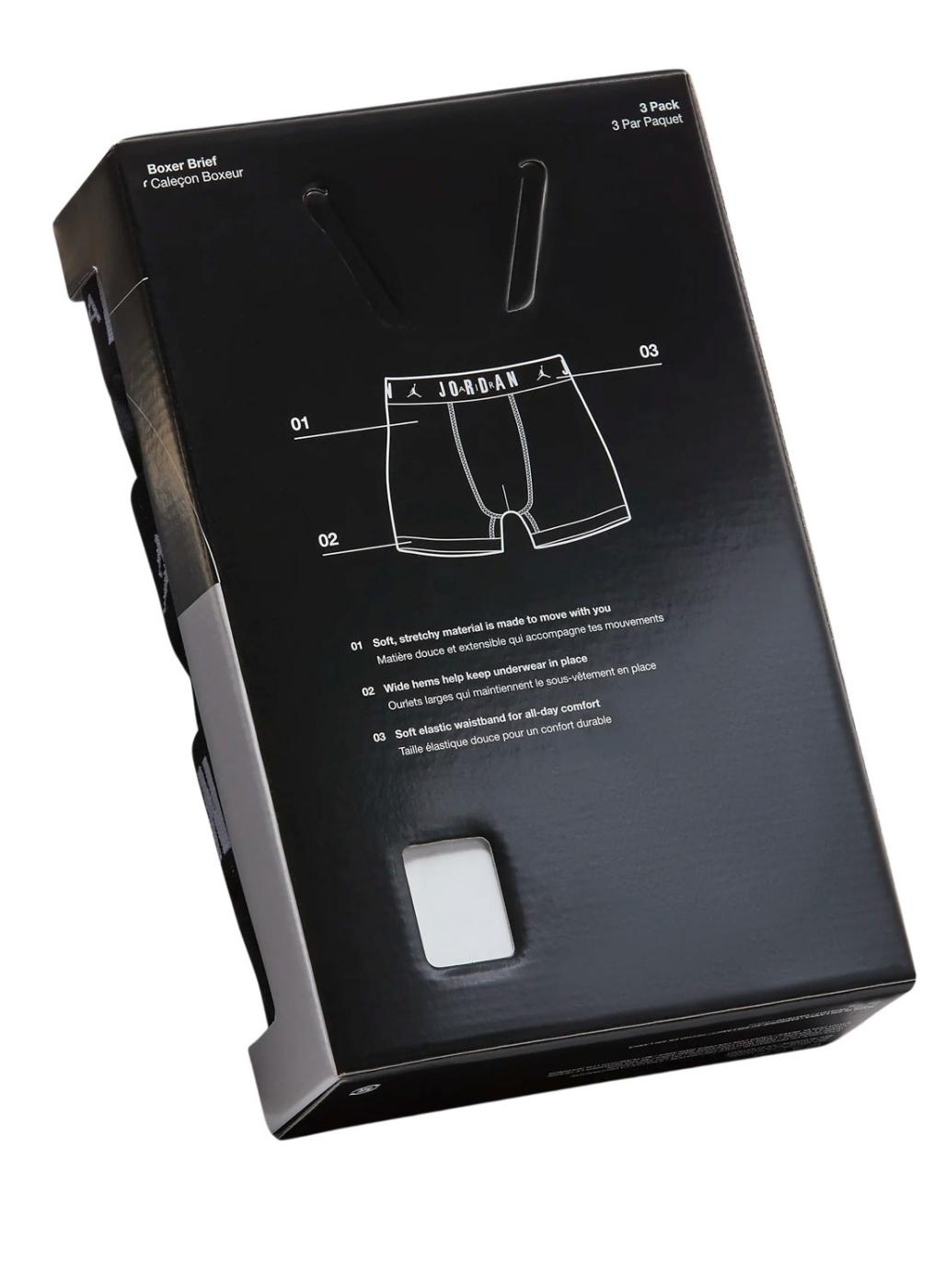 3 Pack de cuecas JORDAN. Modelo Flight Cotton Core. Cuecas tipo boxer. Cor preta. Feitas de tecido de algodão elástico. Tecnologia Dri-FIT que absorve a umidade. Cintura elástica em jacquard com logo da Jordan. Costuras planas. Lavável na máquina de lavar.