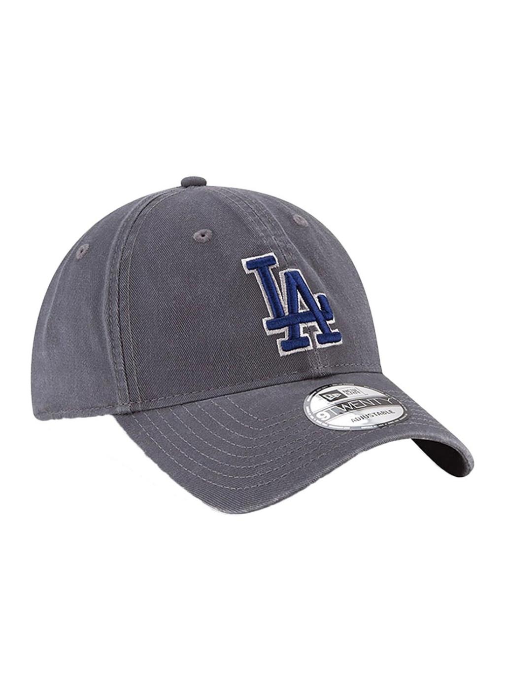 Boné New Era. Modelo Core. Cor cinza. Iniciais Los Angeles bordadas em azul contrastante na frente. Fita ajustável na parte de trás. Efeito lavado.
