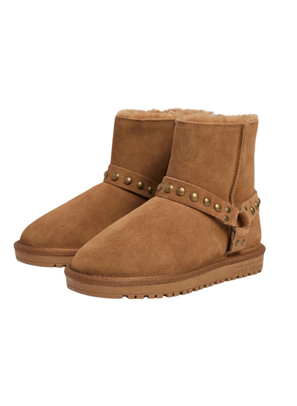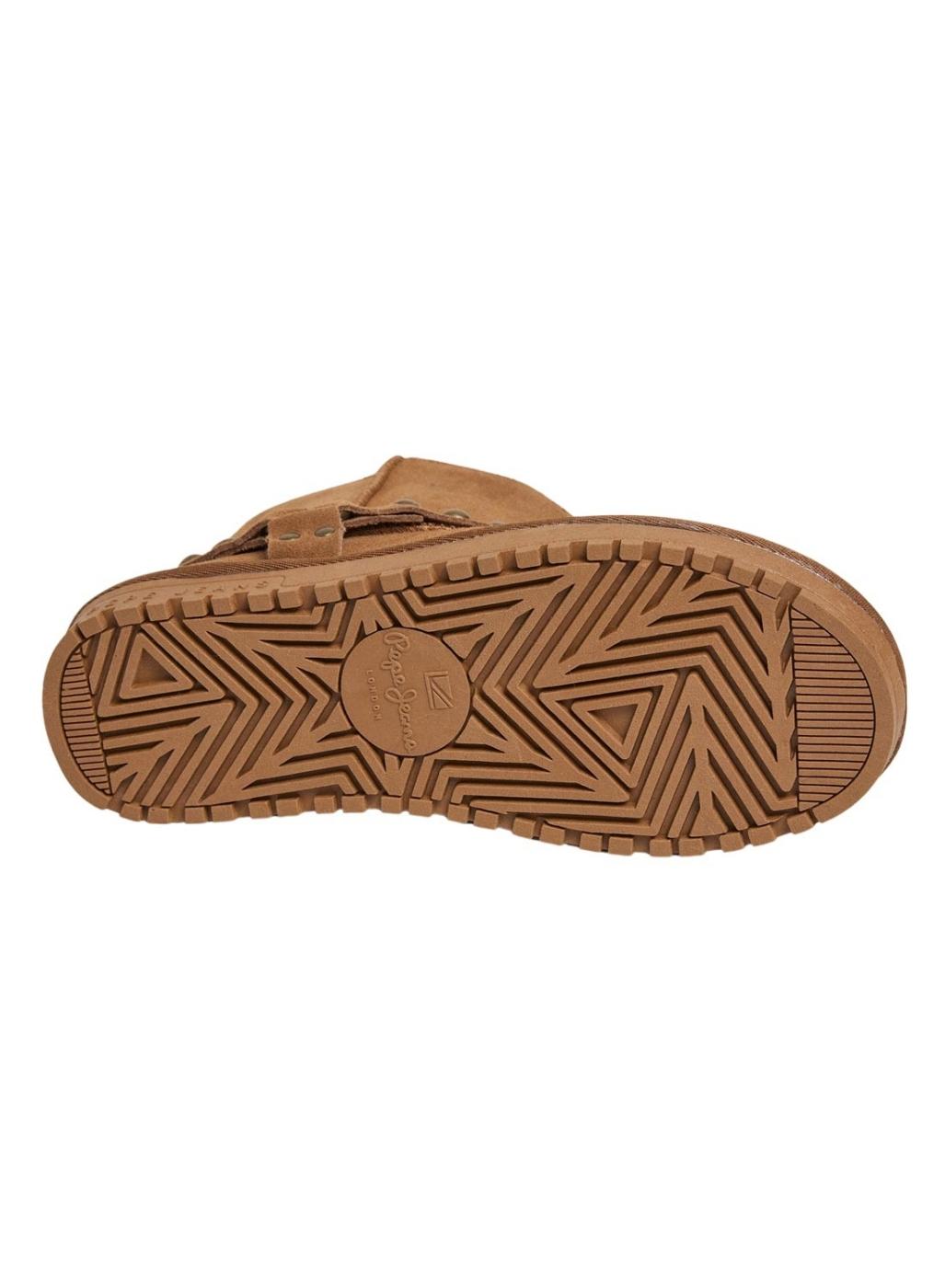 Botas Pepe Jeans. Modelo Diss Biker. Cor camelo. Feito em couro de camurça de vaca. Forro interno quente. Sola TPR macia personalizada. Detalhe de correias com tachas metálicas. Patches com logotipo no calcanhar. Biqueira arredondada.