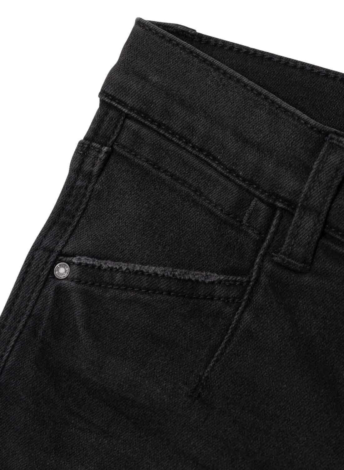 Calça de ganga Name It. Modelo Polly. Corte boot. Levemente boca de sino na parte inferior. Fecho de botão e zíper. Cintura ajustável por dentro. Cor preta.