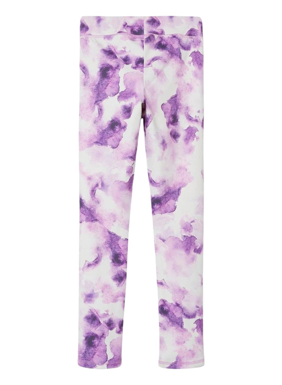Legging Name It. Modelo Diandra. Cor roxa. Cintura média. Corte ajustado. Tecido elástico. Estampa marmorizada.