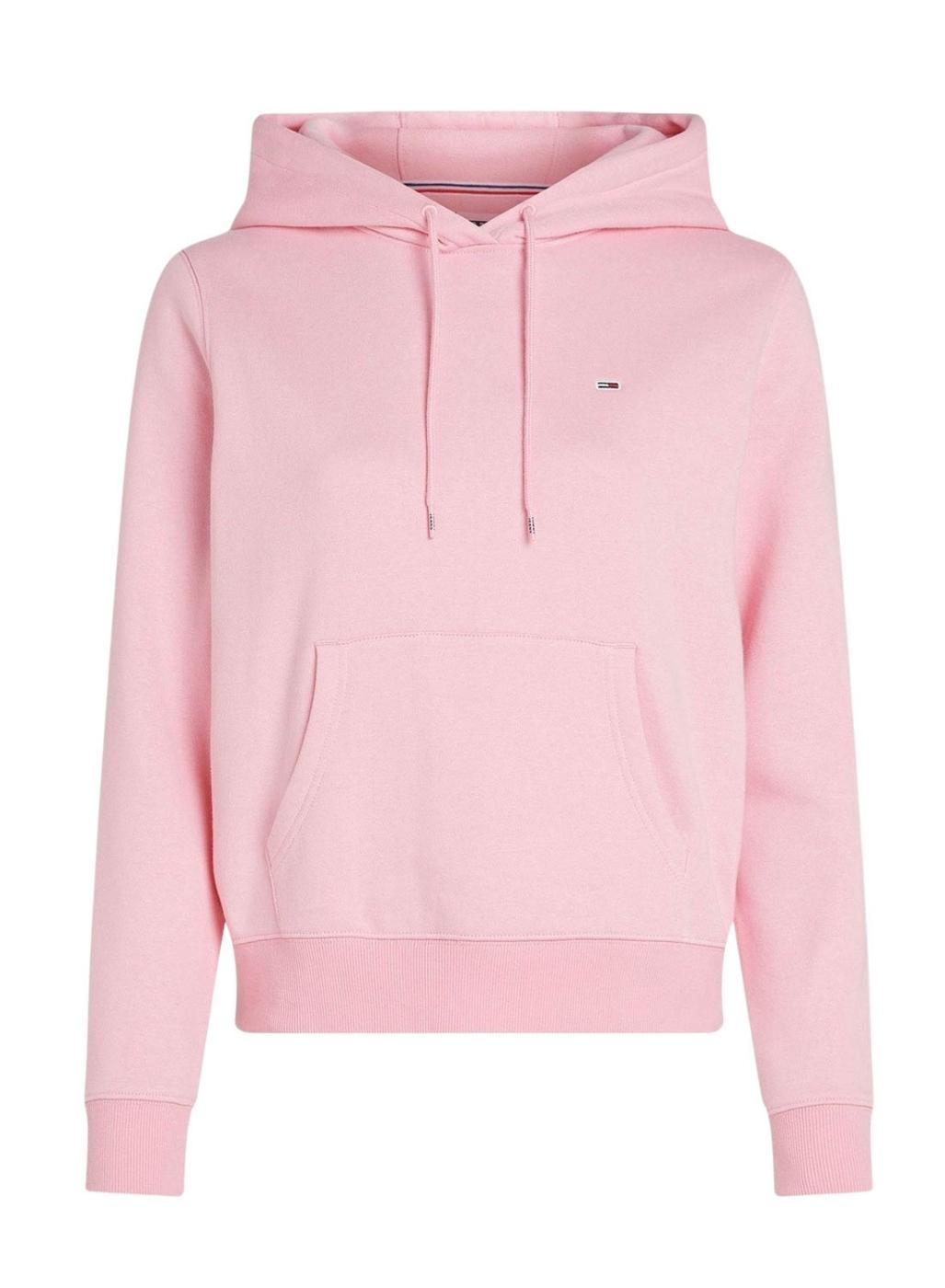 Moleton Tommy Jeans Flag Regular rosa com capuz para mulher