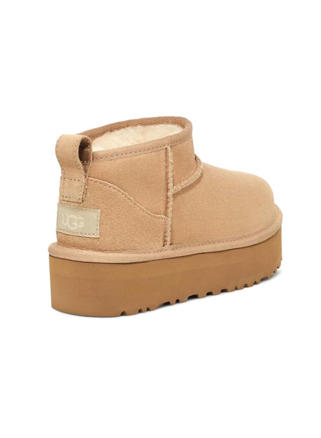 Botas UGG. Modelo Ultra Mini Platform. Cor bege. Parte superior em camurça. Entressola de EVA. Palmilha de lã. Costuras pespontadas. Altura do salto: 3,8 cm.