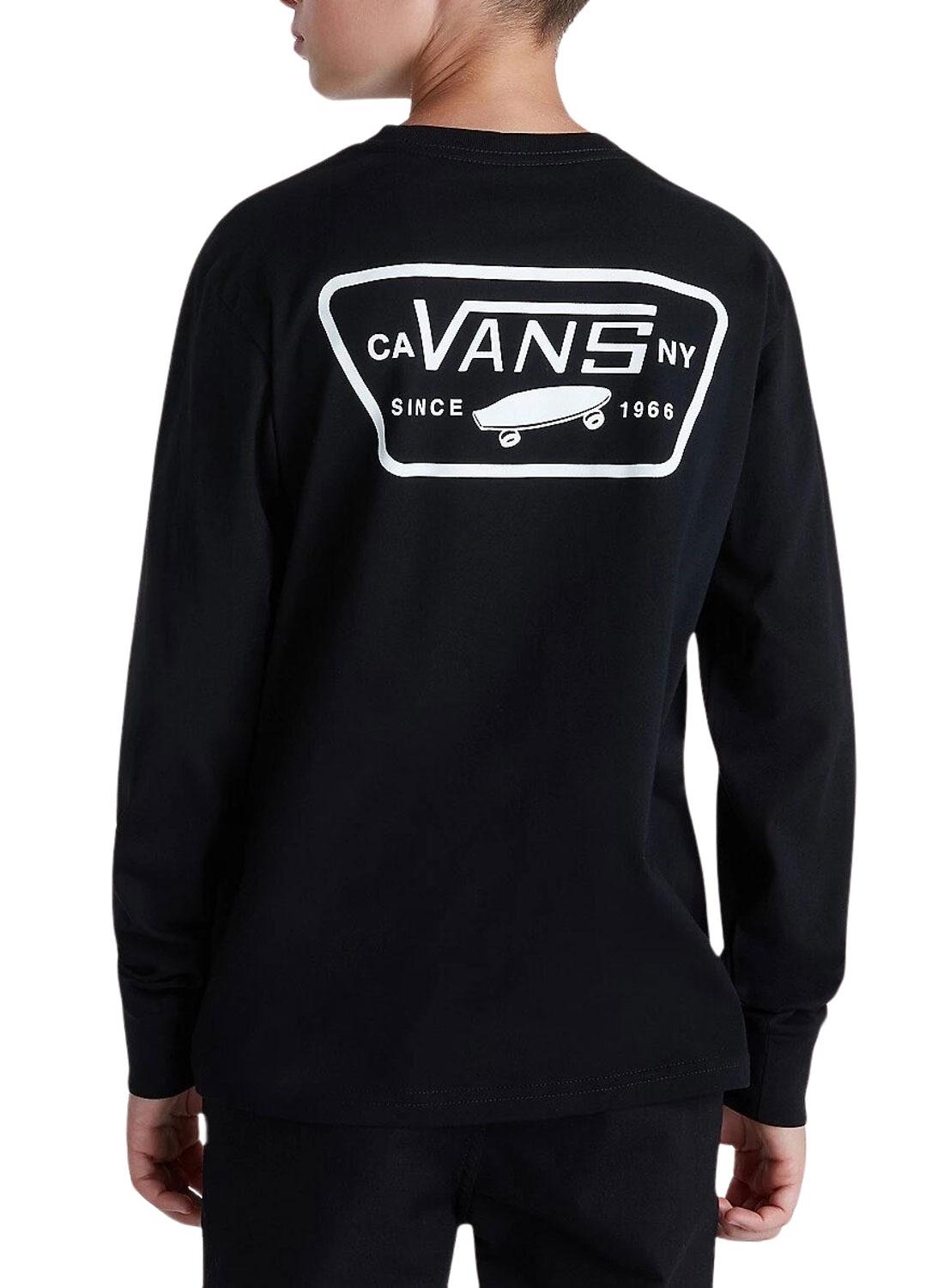 Camiseta Vans. Modelo Full Patch. Cor preta. Gola redonda. Manga comprida. Logotipo de skate no lado esquerdo e nas costas. Corte regular.
