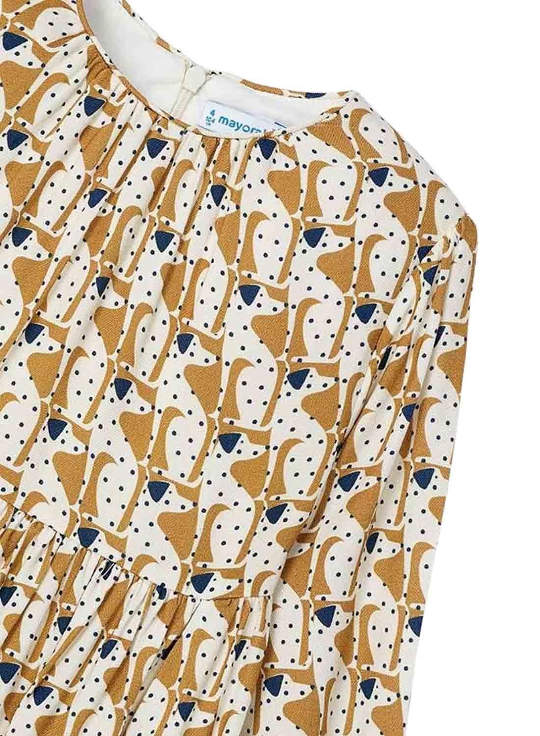 Vestido fluido da Mayoral. De mangas compridas. Punhos elásticos. Fecho com zíper invisível na parte de trás. Tecido de veludo quente e macio. Design estampado.