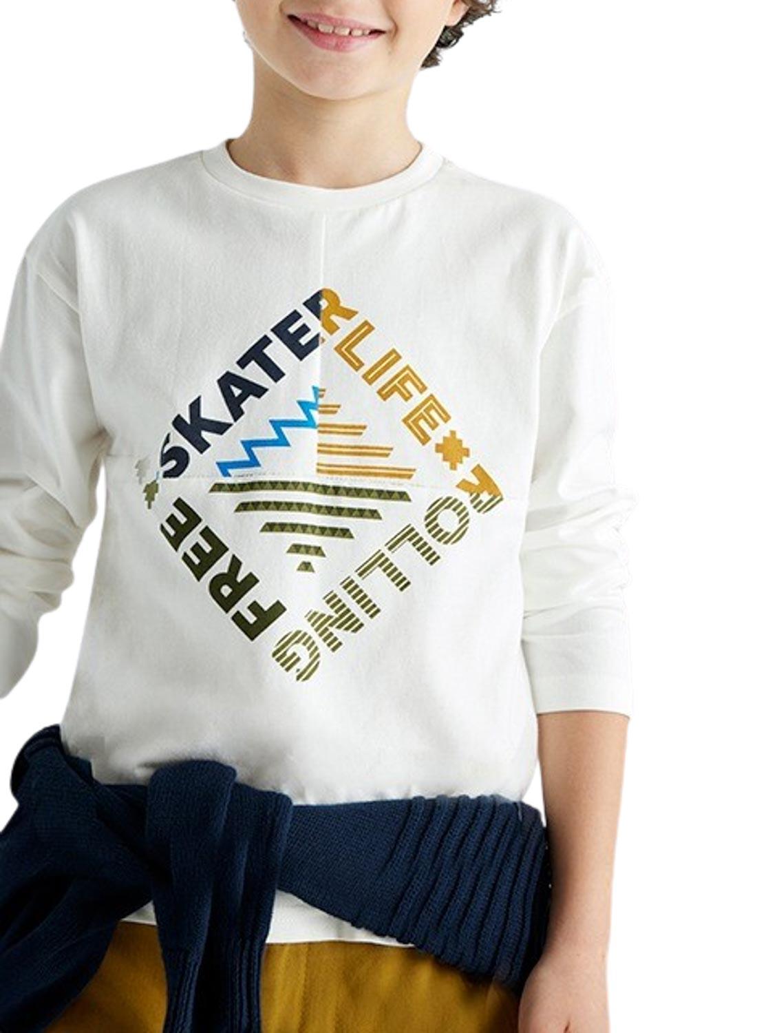 Camiseta Mayoral. Cor nata. Estampada. Gola redonda. Manga comprida. Texto skater life rolling free