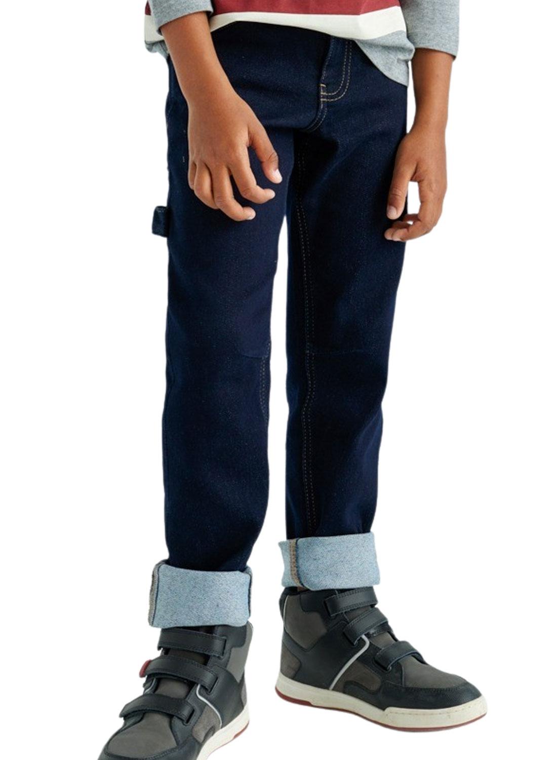 Calças Mayoral com pregas relaxadas em azul marinho para menino.
