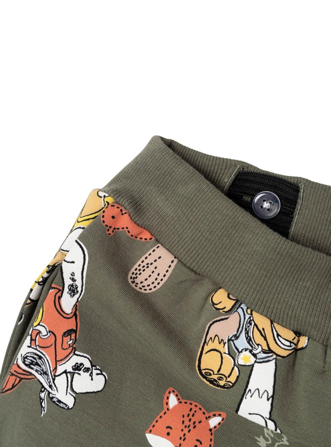 Calças Name It. Modelo Patrulha Pata. Cor verde suave. Estampado. Cintura e bainha elásticas. Cintura ajustável.