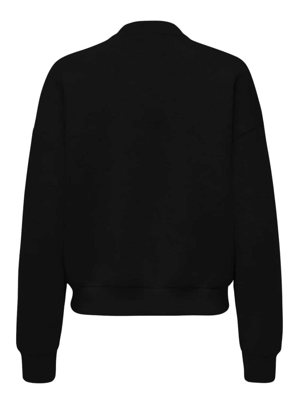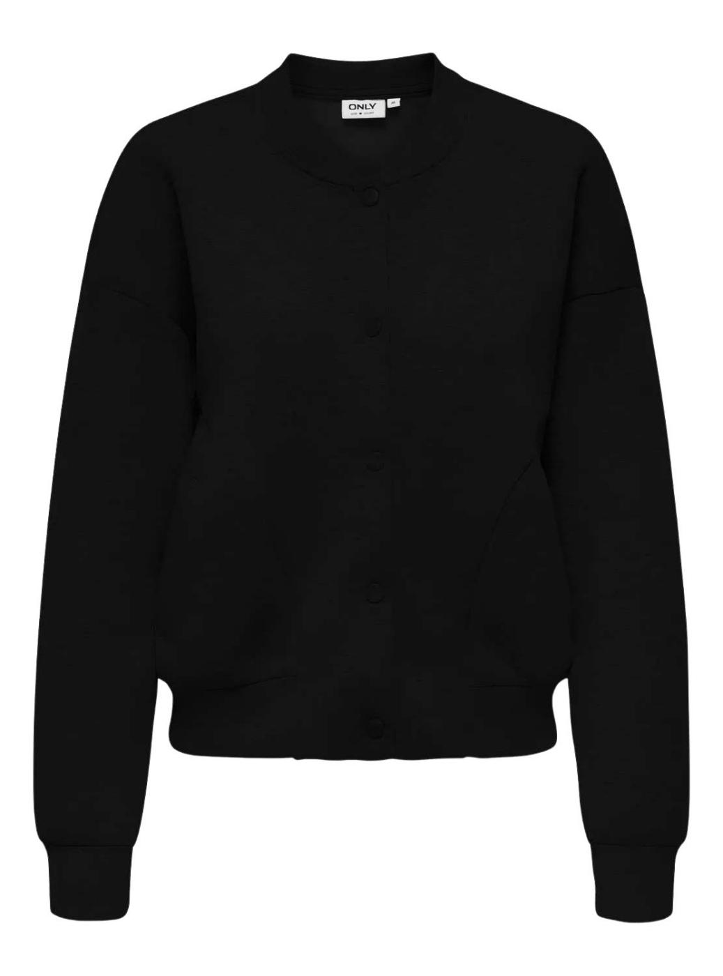 Jaqueta Only. Modelo Naomi. Estilo bomber. Cor preta. Fechamento com botões de pressão. Ajuste regular. Bolsos laterais. Extremidades elásticas.
