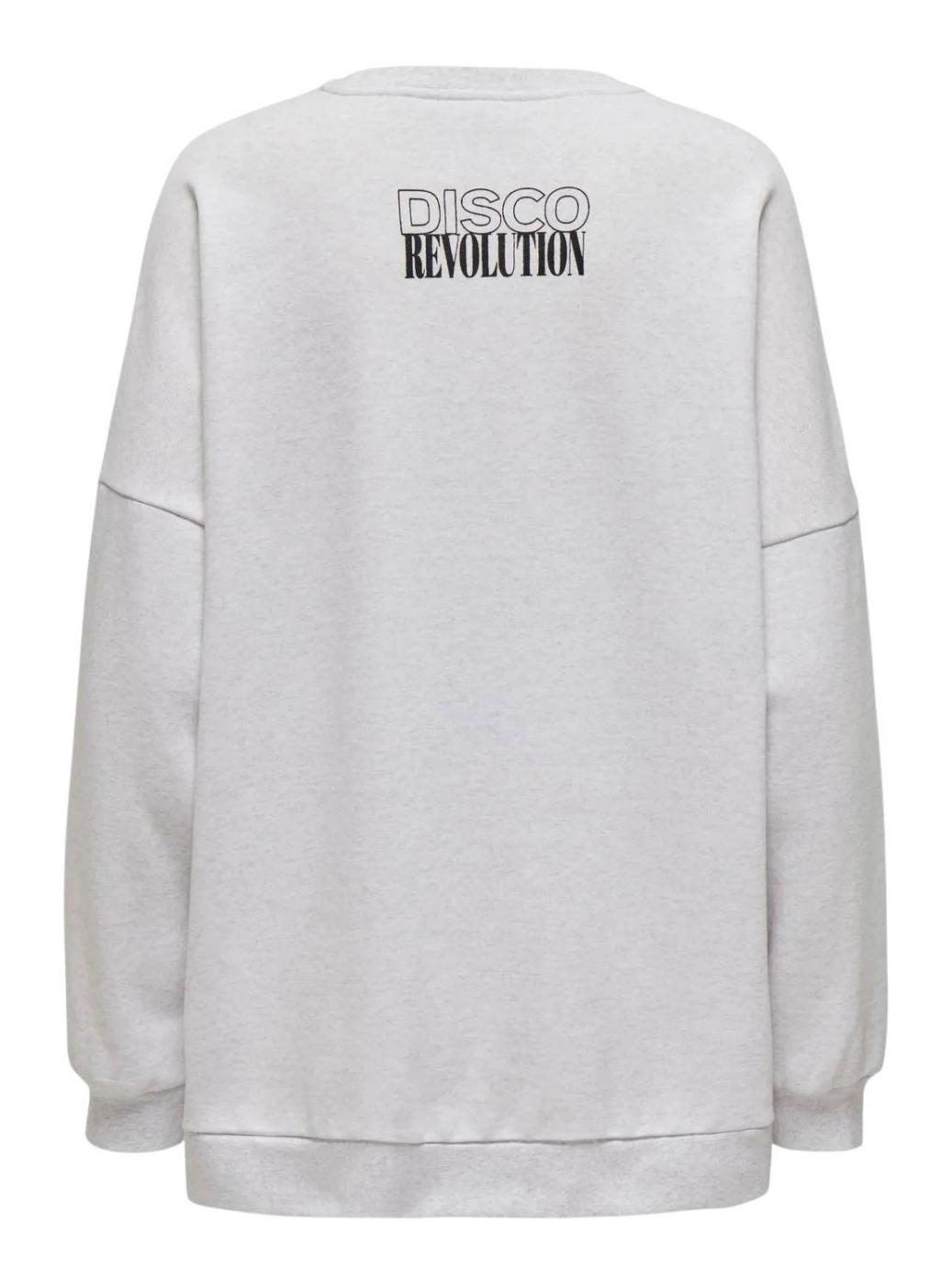 Moletom Only. Modelo Daze. Cor cinza. Ilustração estampada na parte da frente. Extremidades caneladas. Ajuste folgado. Gola redonda. Mensagem estampada nas costas.