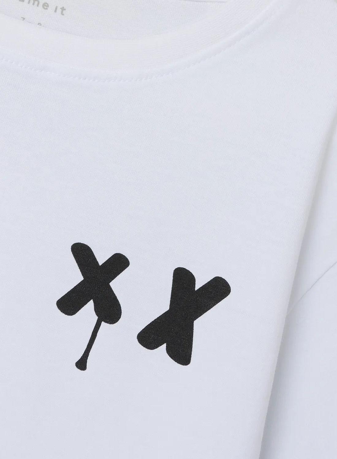 Camiseta Name It. Modelo Sajo. Cor branca. Gola redonda. Manga curta, Estampa de borracha suave no peito e nas costas. Corte regular.