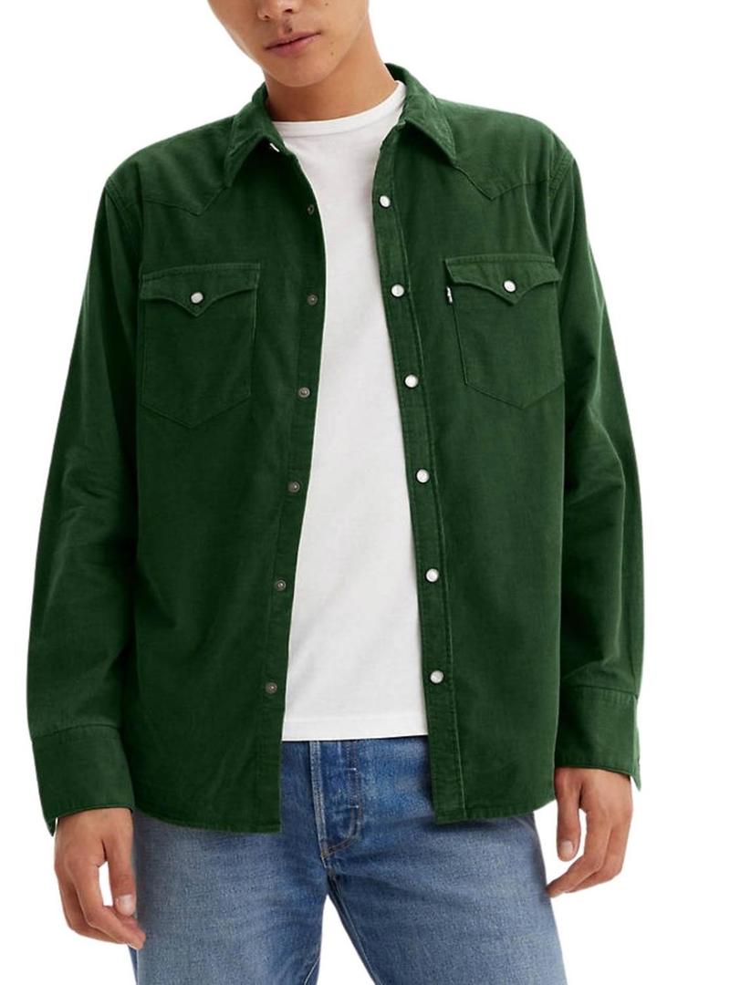Camisa Levis Barstow Western verde de pana para hombreTradução para o português: Camisa Levis Barstow Western verde de veludo cotelê para homem.