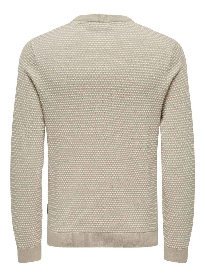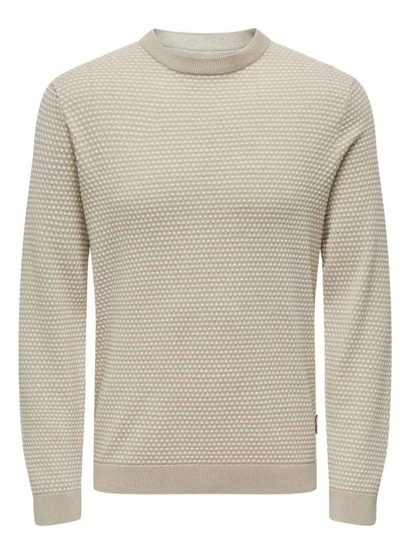 Camisola Only and Sons. Cor bege. Malha estruturada. Gola redonda. Manga comprida. Corte regular.