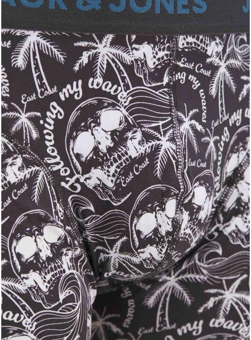 Pacote de meias Jack and Jones. Modelo Damon. Cores azul, cinza e preto. Estampa caribenha. Elástico na cintura com marca. Estilo boxer.