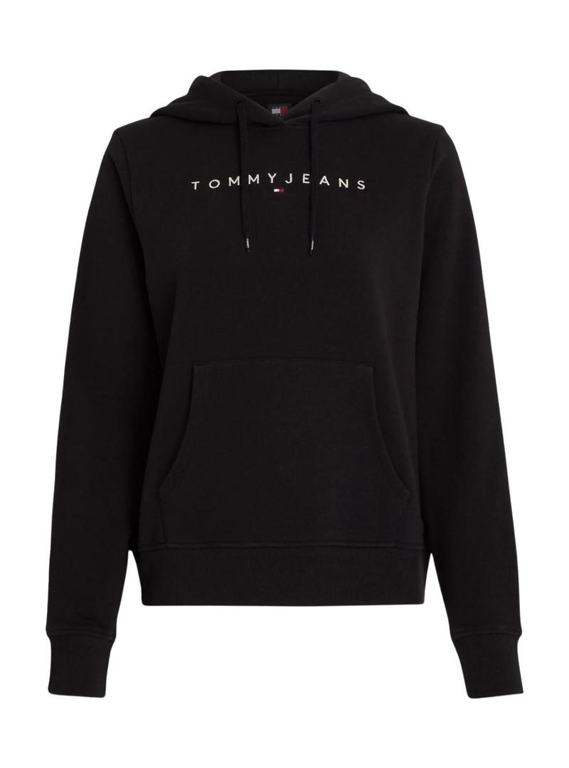 Moletom Tommy Jeans Linear com capuz preto para mulher