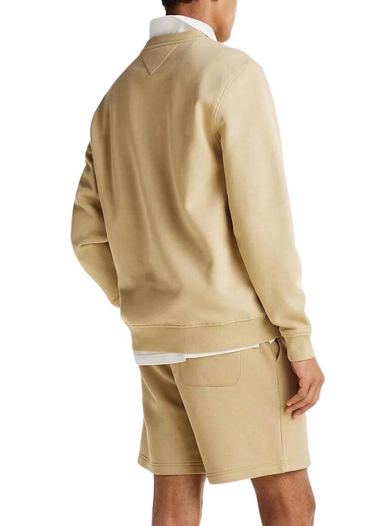 Moletom Tommy Jeans. Modelo Linear. Cor bege. Manga comprida. Gola redonda. Detalhe bordado no peito. Caimento regular.