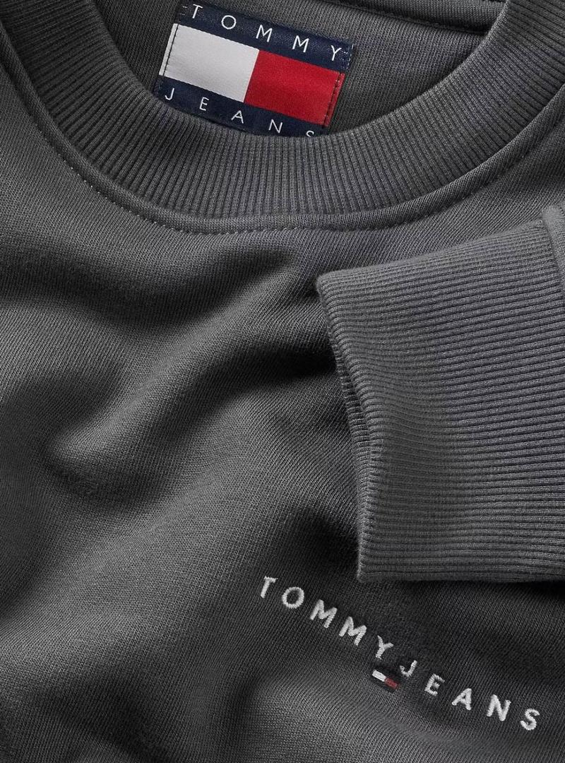 Moletom Tommy Jeans. Modelo Linear. Cor preta. Gola redonda. Detalhe bordado no peito. Manga comprida. Corte regular.