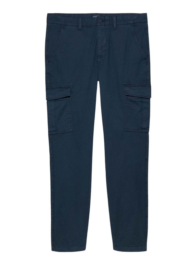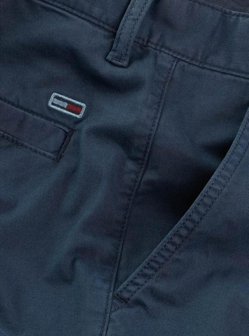 Calça Tommy Jeans. Modelo Austin. Cor marinho. Fecho com botão e zíper. 6 bolsos, incluindo 2 bolsos cargo nas pernas.